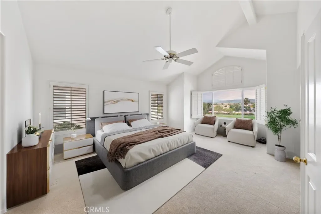 Located in the highly sought-after community of Rancho Serrano, this beautifully appointed home offers four bedrooms and three bathrooms, including a full bedroom and bathroom on the main level ideal for guests, multigenerational living, or a private home office. The interior features soaring ceilings, elegant shutters, and custom built-ins that add both style and functionality. Enjoy breathtaking views of the golf course and lake from the primary suite, living room, and kitchen, or unwind in the backyard with a glass of wine as you take in the serene surroundings.