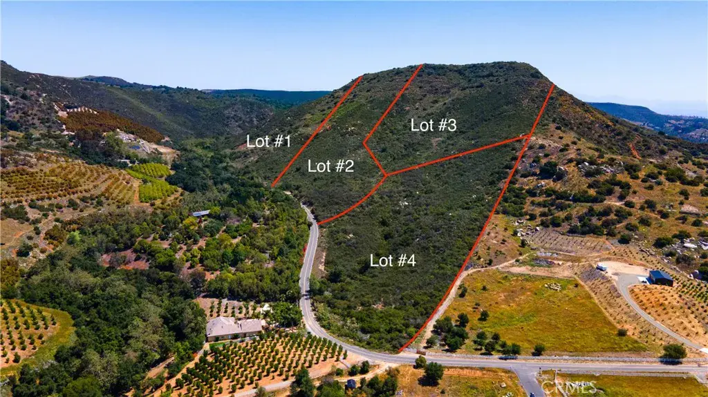 4 Parcels sold separate or together. Escape the ordinary and find your freedom in De Luz—Temecula’s hidden gem known for its rolling hills, ocean breezes, and peaceful, rural charm. Tucked among luxury estates, vineyards, and avocado groves, this is the perfect backdrop for your dream home, hobby farm, or private retreat. Located just a short drive from SoCal’s top wine country and within reach of both San Diego and Orange County, De Luz offers a rare blend of quiet seclusion and convenient access to city life. You have the option to purchase one, several, or all four neighboring parcels—each offering expansive acreage and endless potential: Lot #1: 12.54 acres offered at $199,000. Lot #2: 9.29 acres offered at $199,000. Lot #3: 14.17 acres offered at $209,000. Lot #4: 9.11 acres offered at $189,000. All 4 Lots Together: 45.11 acres for a total of $779,000. Whether you’re dreaming of wide-open space, planning an agricultural venture, or just want to build your forever home in a setting that feels worlds away, this land offers the space and freedom to make it real. Annual $90 HOA.