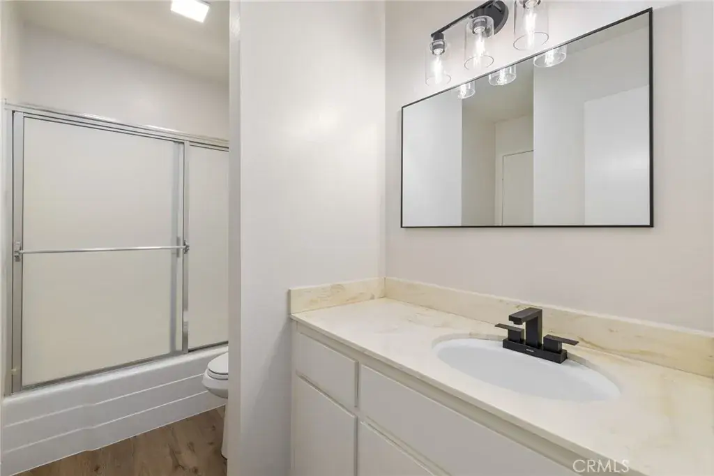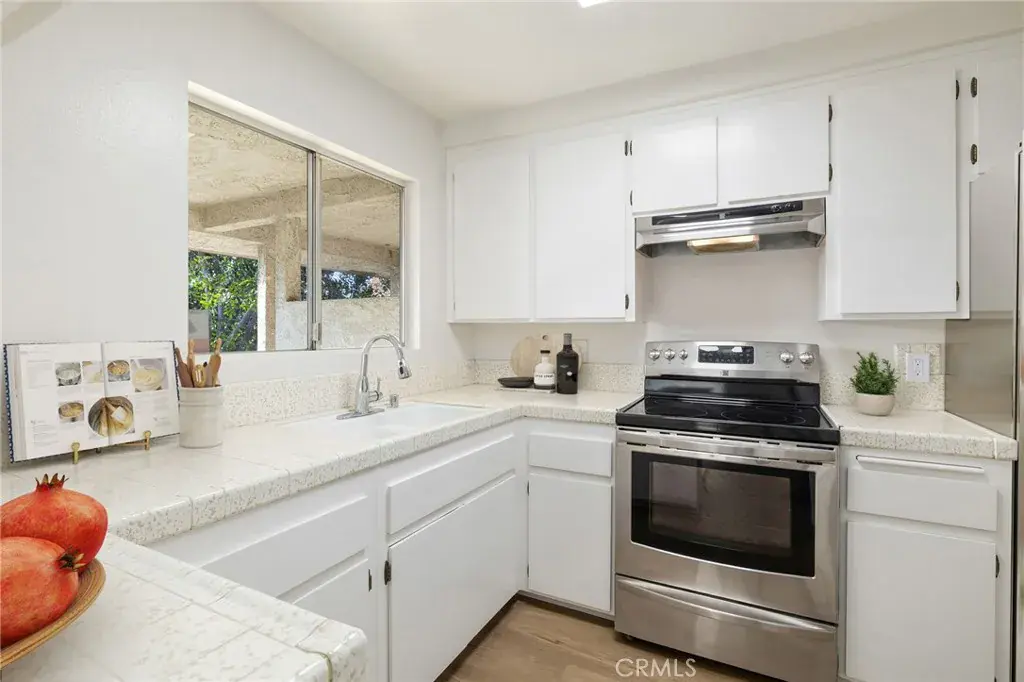 Tastefully updated upper-level, single-story condo ideally located within the community. This light and bright home features brand-new luxury vinyl plank flooring, fresh interior paint, and new baseboards throughout. A spacious covered patio welcomes you to the front entry, opening into an inviting family room with dual windows and an open connection to the kitchen. The kitchen offers bright white cabinetry, tiled countertops, stainless steel appliances, updated lighting, and convenient countertop seating. Additional cabinetry was added where the dishwasher was previously located and can easily be converted back if desired. Down the hall, the generously sized primary bedroom features double-door entry, a walk-in closet, and a private vanity. A separate shower area creates a Jack-and-Jill style bathroom with hallway access. The secondary bedroom is located just steps away, along with the full bathroom featuring dual sinks, new fixtures, framed mirrors, and updated lighting. A hallway laundry closet with bi-fold doors adds everyday convenience. The unit includes shared use of a two-car garage located just steps from the condo. Community grounds are beautifully maintained with mature trees and winding walking paths throughout. Ideally situated within the highly regarded Temple City School District.