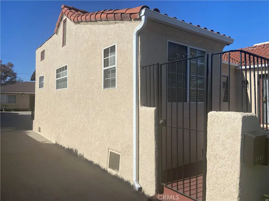 The front residence (5829 Oak Ave) is a Spanish-style home, offering 2 bedrooms and 1.5 bathrooms with approximately 1,224 sq. ft. of living space, plus garage of approx. 400 sq. ft. Notable improvements include roof underlayment and metal flashing, custom laminate kitchen countertops, new walk-in shower, interior and exterior painting, new vinyl plank flooring throughout, ventilation upgrades, subfloor and foundation reinforcement, replacement of the main water line with new shutoff valves, and a new water heater (2026), and garage has new roof in 2025. The home also includes central air, a living room with fireplace, separate dining area, and a 2-car garage with private courtyard. Currently for rent on Zillow for $3290/month.