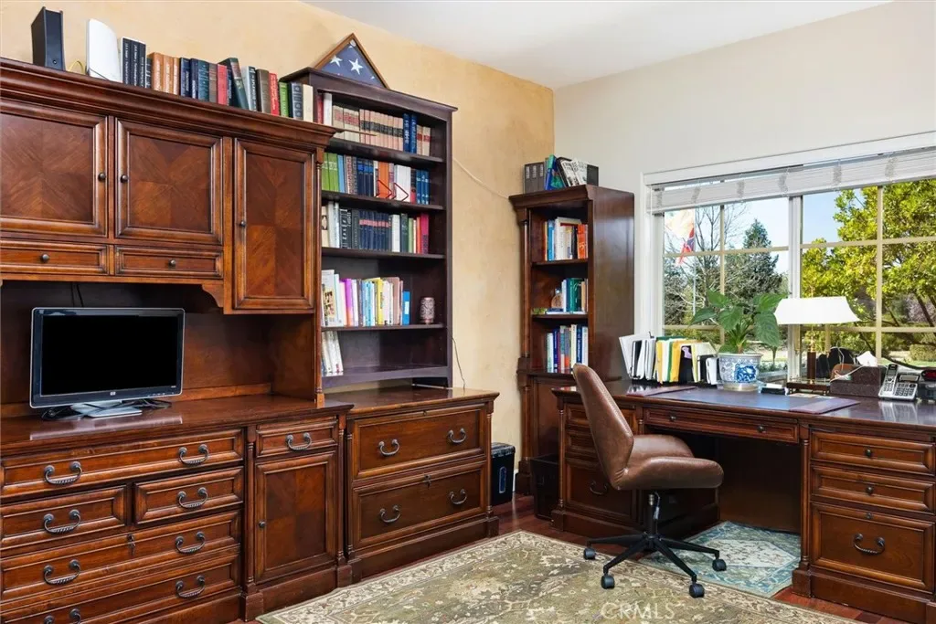 Spectacular home in the exclusive Spanish Lakes gated community. The square footage totals 4140sf that includes the additional covered patio that is enclosed by 8’ X 40” expansive glass doors that frame the gorgeous backyard pool and waterfall; with its own heating unit and gas BBQ, this room can be enjoyed year around. The entry courtyard with its graceful fountain is a great place to sit back and enjoy the countryside. This home is a truly versatile and elegant home. The floor plan is plentiful yet personal, great for entertaining. Off the tiled grand foyer is a spacious office with double door entry. The formal dining room opens to the living room with a grand fireplace. Gorgeous wood flooring. The half bath is conveniently located down the hall. The beautiful and especially spacious Owner’s Suite is located on the opposite wing from the other 3 bedrooms providing privacy and peacefulness. The fireplace and bay window add charm, with a French door out to the patio, views of the pool and lush landscape. The bath has 2 separate vanities. 2 generous closets. The kitchen work space is amazing with 2 sinks and an abundance of counter space and cabinetry. Sub-Zero refrigerator/freezer. The Sub-Zero wine/beverage refrigerator is always a plus, cooling over 140 bottles! The kitchen opens to the dining nook & great room with a cozy fireplace. 2 guest bedrooms share a bathroom, with the 3rd being an ensuite bedroom. A spacious laundry room with a sink and lots of storage gives this room the nice option of a Butler’s Pantry. Central vacuum system, water softener and water osmosis system. Dual zone heating/air systems. Tankless water heater. The 3 car garage is extra deep, with an attic space large enough to stand! The backyard is very private with one side bordering dedicated open space complimenting the mature landscaping around the infinity pool which creates a true oasis. It wouldn’t be complete without the outdoor shower! There is an outdoor kitchen, firepit, stone patio and walkways. Owned Solar for the home with a separate owned solar for the pool. The Spanish Lakes private community offers walking trails and a park on one of the three lakes where neighbors meet for socials. This community has a rural feel but is minutes from Downtown Paso Robles and Templeton.