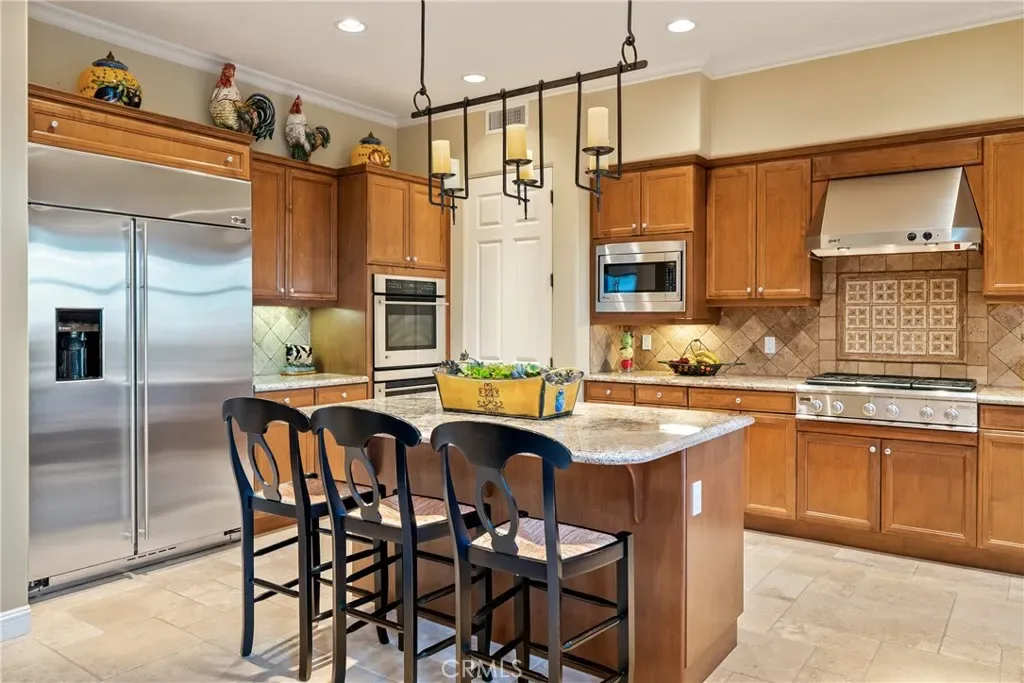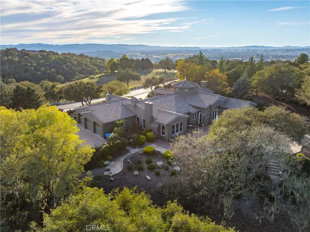 Experience refined Central Coast living in this stunning 4,146± sq. ft. Spanish Colonial estate, perfectly positioned on a private 3± acre parcel within the exclusive gates of Santa Ysabel Ranch. Enjoy sweeping 180° views of vineyards and mountains from nearly every room. This 4-bedroom, 3.5-bath home welcomes you through a grand rotunda entry with soaring ceilings, custom lighting, and travertine flooring throughout. The formal living and dining rooms feature tall Anderson windows framing breathtaking vistas and a cozy gas fireplace. The gourmet kitchen is equipped with GE Monogram stainless appliances, including a six-burner range, double ovens, wine fridge, and granite countertops with maple cabinetry. The adjoining family room and casual dining area create an inviting space for entertaining with seamless indoor-outdoor flow.