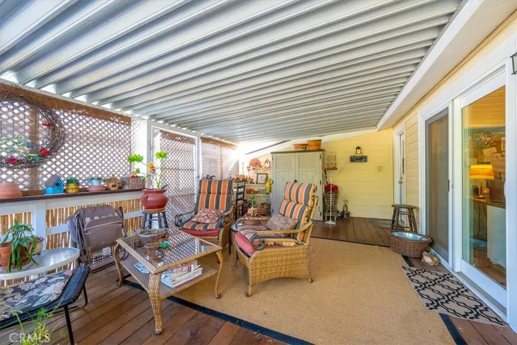 Outdoor living is equally charming, with beautiful, expansive front and back porches that create peaceful spaces to unwind. The landscaping includes lovely rose bushes and hardy succulents, adding color and character without demanding upkeep. Set in one of the prime, most tranquil locations in the park, the home offers excellent privacy along with an unusually low space rent. An attached one-car garage adds extra convenience and storage.