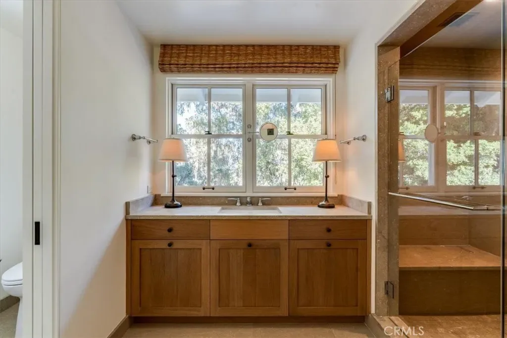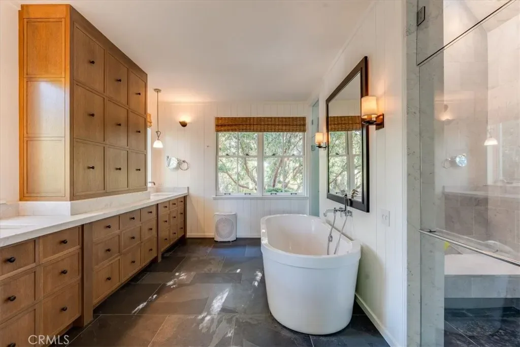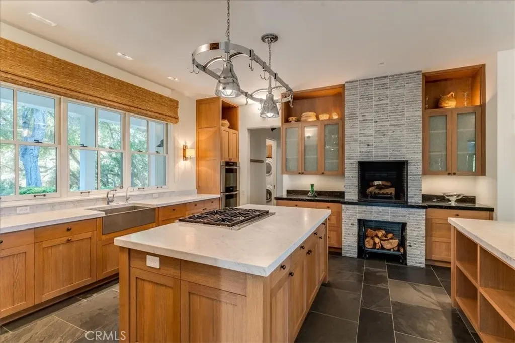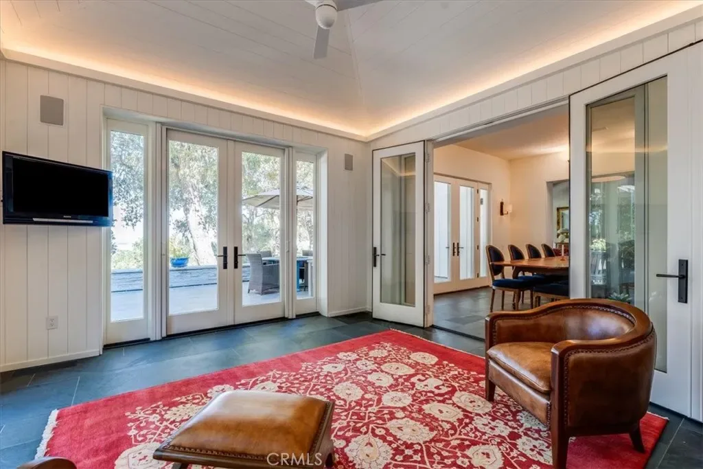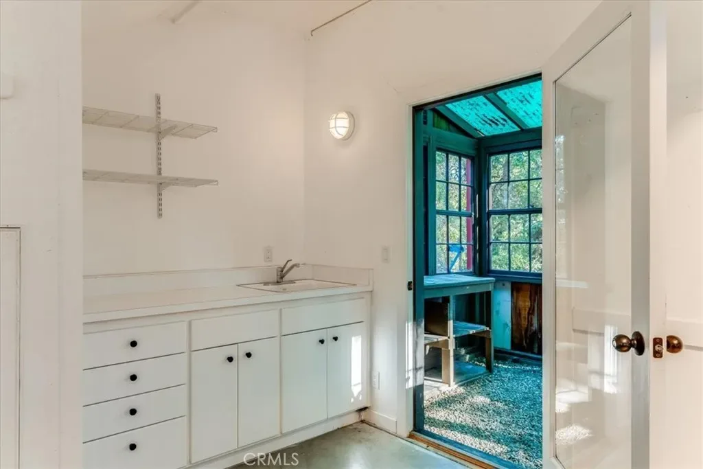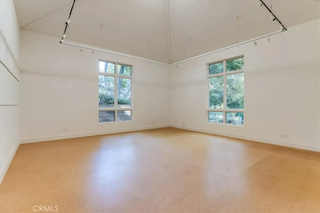 Privately situated away from the main residence, the approximately 1,400± square foot studio guest home and barn offer exceptional versatility. Complete with an art studio, full kitchen, office, bunkroom-style bedroom, and a great room-inspired living area, the guest home also features its own fenced yard and patios, making it ideal for guests, extended family, or creative pursuits.