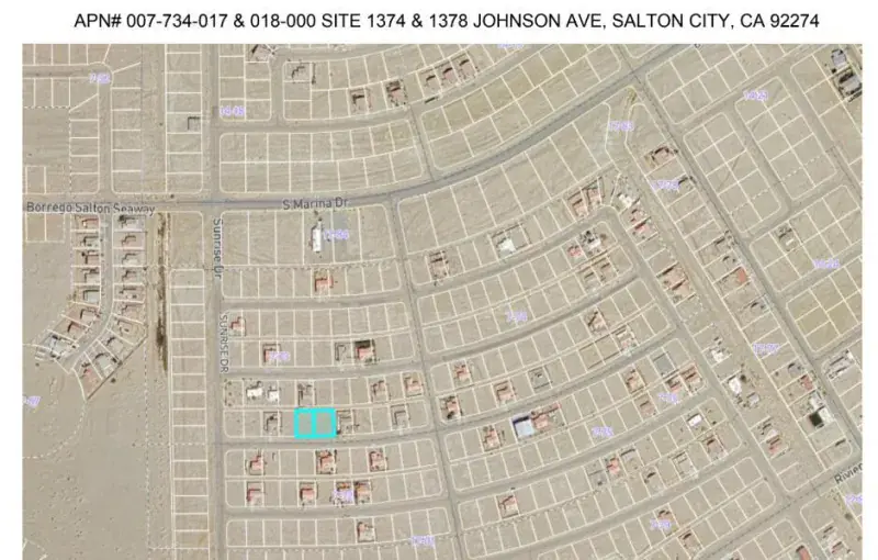 WEST SIDE OF THE HIGHWAY COMBO LOT!! 1374 and 1378 Johnson Ave. APN’S #: 007-734-017-000 & 007-734-018-000. These amazing lots are side by side on the west side of Highway 86 next to newer model home. Very close to The Salton City Travel Plaza and restaurants in the area. Don’t miss out the opportunity on owning side by side lots.