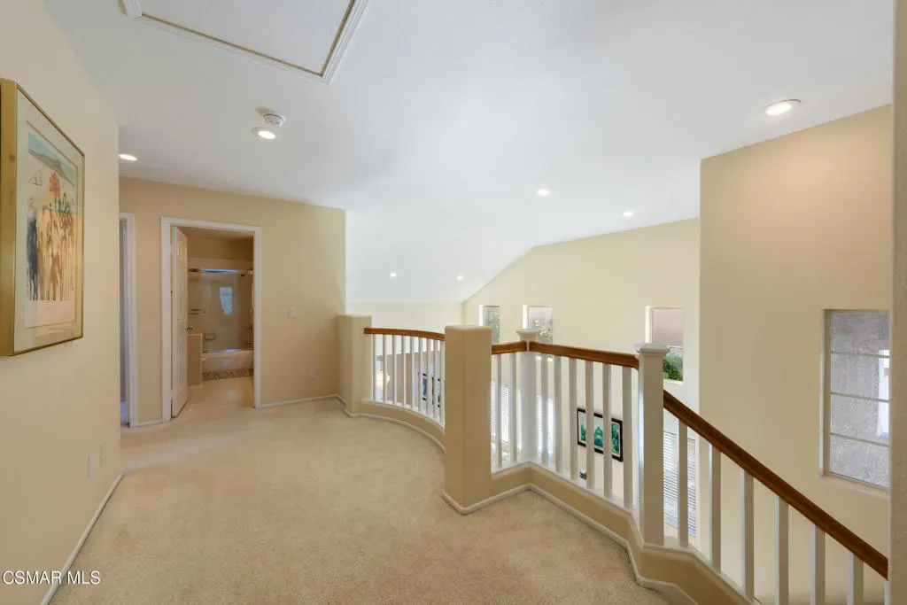On the market for the very first time! And what a gem! This home located in guard gated Rancho Conejo Village offers an amazing lifestyle and a terrific floorplan. With a fabulous raised formal entry elegance is a word that comes to mind. With marble and hard wood, the first floor is simply beautiful. The family and living rooms are very large and spacious. A two way fireplace separates the living spaces. And the kitchen… the breakfast nook is equally roomy and with a towering vaulted ceiling, cooking is a joy. The white cabinetry, black granite counters and newer appliances will excite your culinary spirit and the island makes food dream prep, dreamy. With an office/bed 4 plus a full bath down, you and your guests will love the layout. Interior laundry and an oversized 3 car garage round out the many benefits of this fine home. And did I mention immaculate? This home is so clean, you won’t have to lift a finger after you move in. Upstairs you’ll find a primary bedroom with a beautiful gabled ceilings and an ensuite with tub and shower plus a massive walk in closet. The secondary bedrooms are also very large and if anyone’s ever used bath 2, based on how clean it is, I’d be surprised. The home is light a bright and the backyard great for entertaining. The built-in BBQ screams let’s cook! While the in ground spa says, come on in and relax, the water’s great. And… continuity of ownership means you’ll know everything there is to know about the home’s history and maintenance. Where else can you find that but a one owner home? If you don’t think that’s important, think again! Located on a quiet street, you’re just a short way to the community pool. With wandering parkways throughout the community, Rancho Conejo is so wonderfully pedestrian. Great for dogs, kids and the elderly alike. Not to mention that Rancho Conejo Playfield is very close which features a playground, softball and soccer fields, tennis, basketball and the best public pickleball courts in the valley! Near the Los Robles Regional Medical Center, all the banks, Home Depot, Lowes, LA Fitness as will as fine dining and the Oaks Mall with Farmer’s Market every Thursday, not to mention the 101 freeway – man, there’s no easier nor more convenient and pleasurable place to live anywhere! Super low HOA dues too!