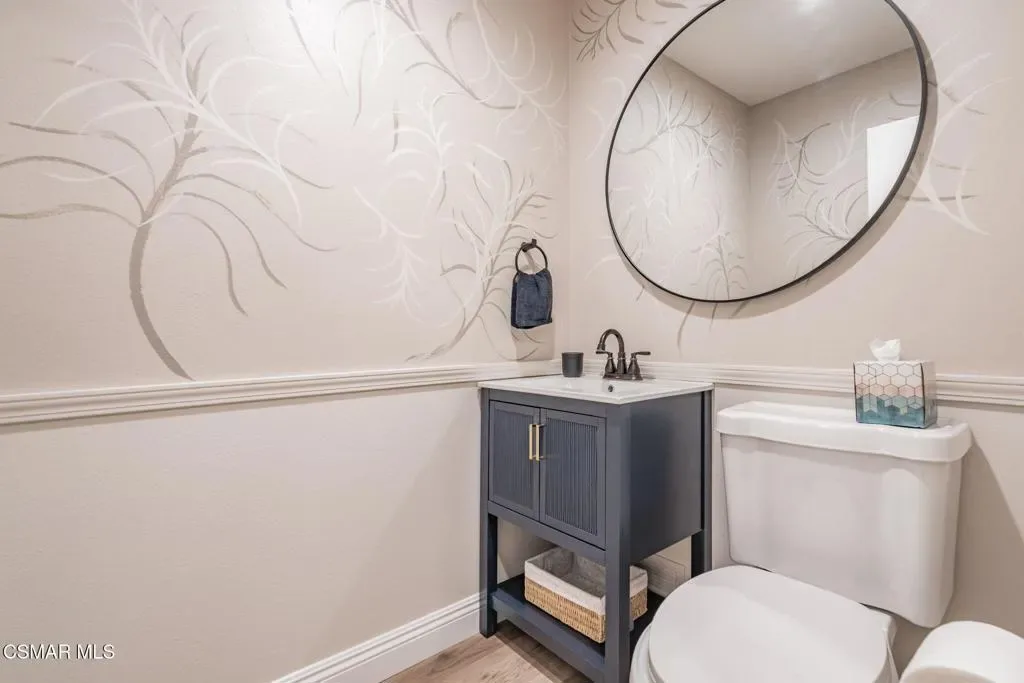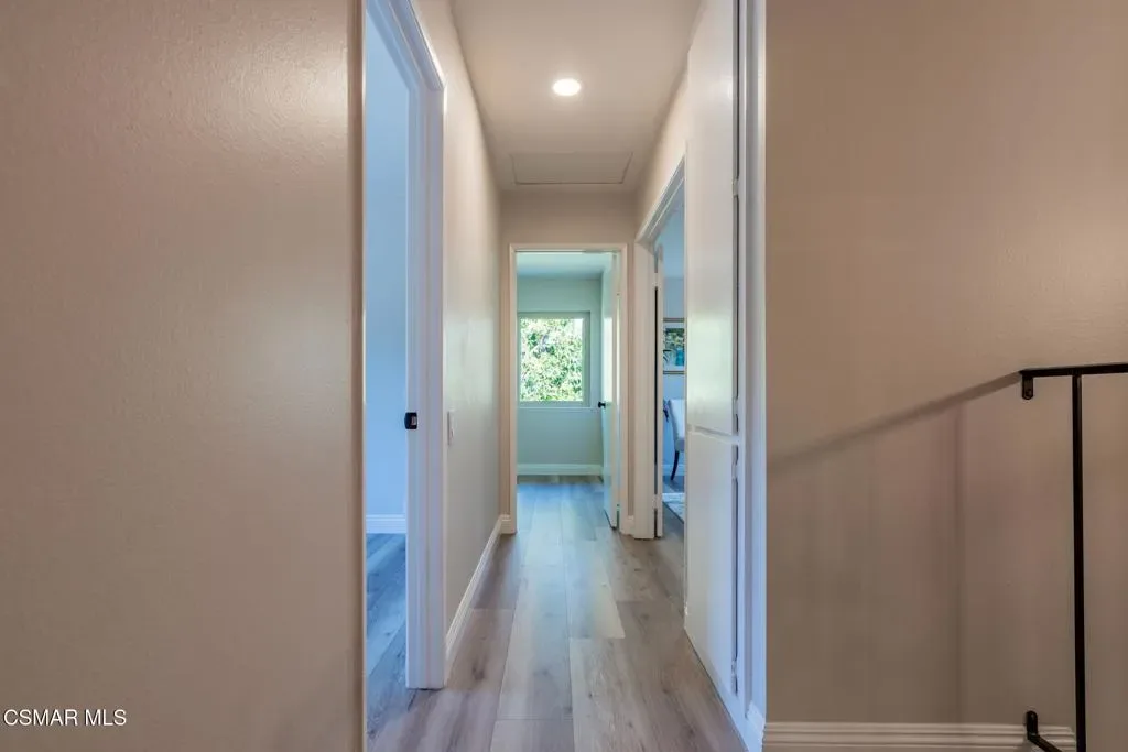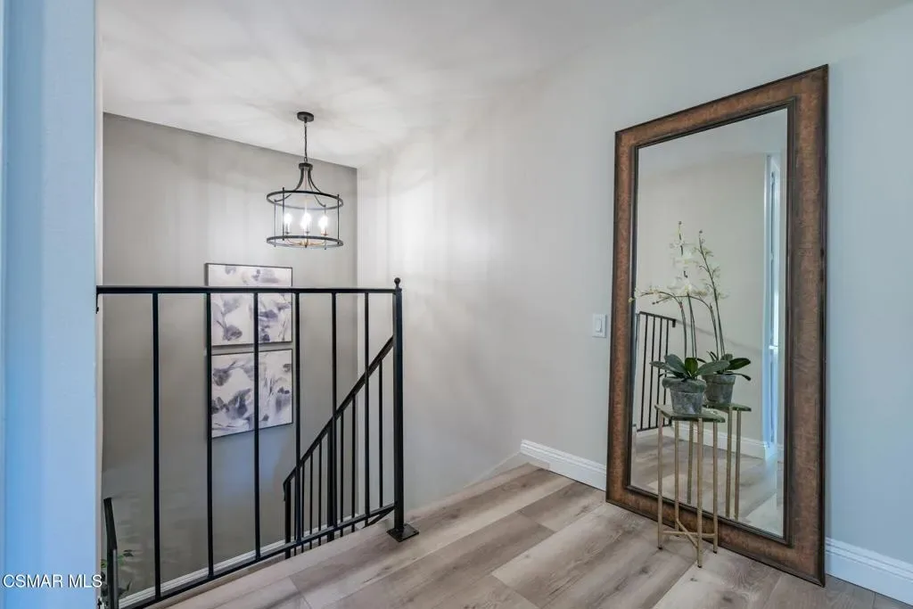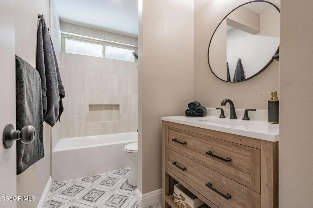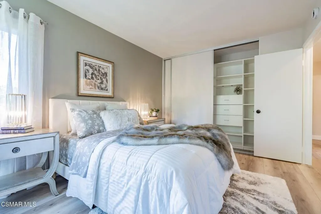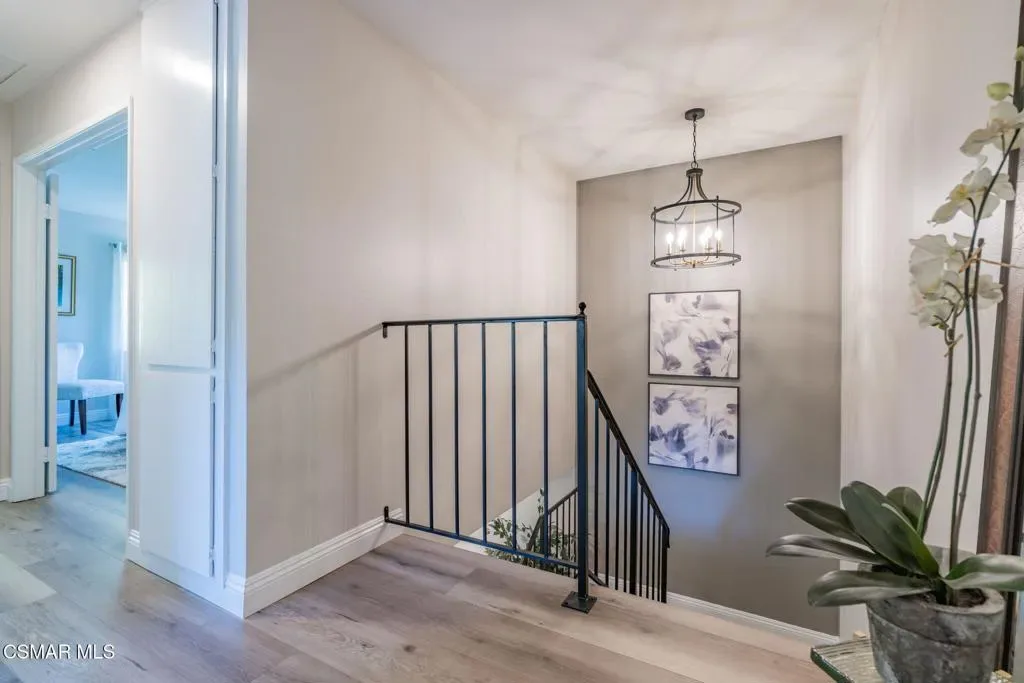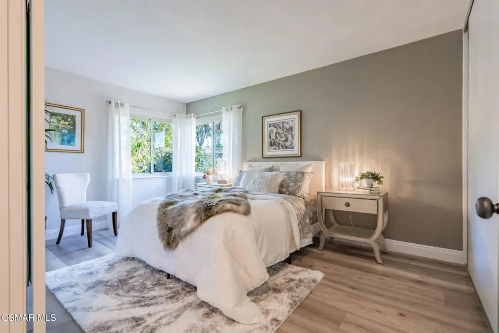 This meticulously designed Turn-key home is nestled in the peaceful Oakbrook Townhomes community with abundant greenbelts and tree lined pathways situated in the beautiful, centrally located city of Thousand Oaks. This 3 bed/1.5 bath 1152 Sq. Ft. townhome is upgraded throughout by an interior designer with upgrades including: new luxury vinyl plank wood-like flooring, new paint with elegant designer color pallet, five inch baseboards, scraped ceilings , and dimmable recessed lighting just to name a few. Both bathrooms have new sinks, vanities and fixtures including the upstairs beautifully tiled shower with bathtub and the designer color pallet carrying over to the gorgeous tiled floor. The kitchen boasts Spanish quartz counter tops and backsplash, custom cabinetry, soft-close drawers, LG stainless steel appliances, a Fisher & Paykel stainless steel refrigerator, a large basin stainless steel sink and a high end Wasserwerk pull down kitchen faucet. Some energy efficient features include a newer Bosch HVAC system, LG ThinQ Smart washer and dryer, and double-paned American Vision windows throughout including patio slider. The park-like amenities include a large pool, a separate kiddie pool, spa, clubhouse, and a playground area surrounded by the lush green landscaping. The low HOA fee also includes : trash, insurance, and maintenance of the home’s exterior and common areas. A serene neighborhood with great shopping, dining and the Conejo Valley award-winning schools nearby. This is a must see Turn-key home ready for a new happy owner to enjoy for many years to come.