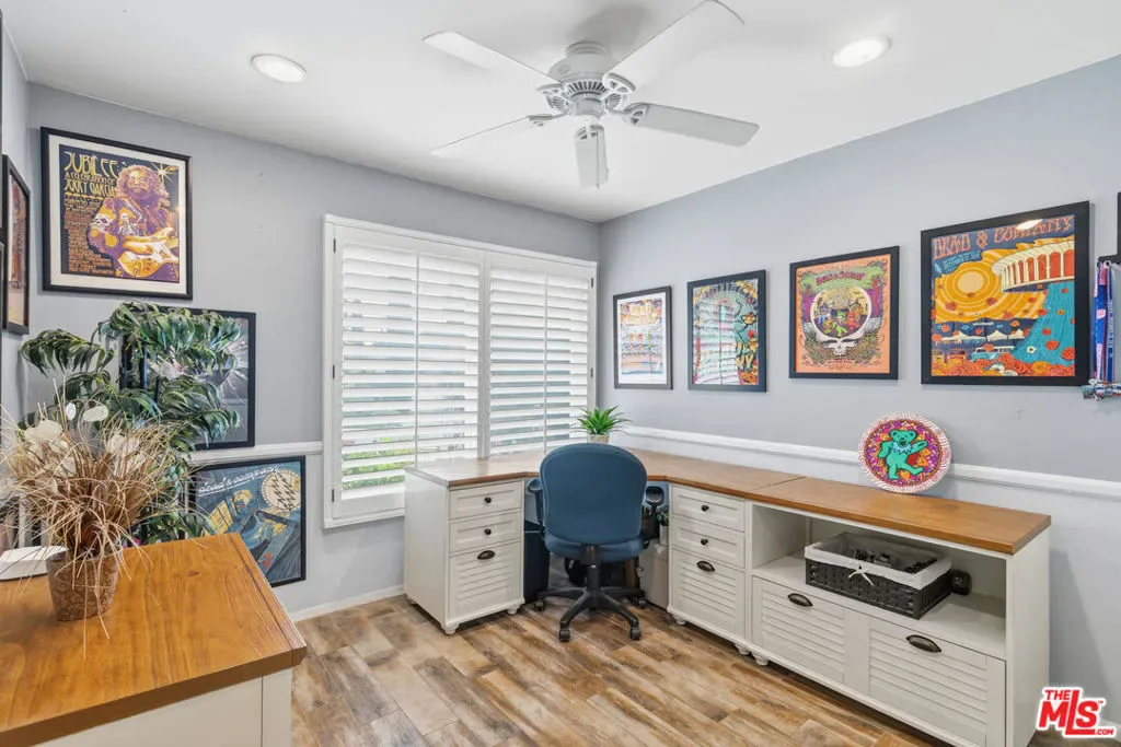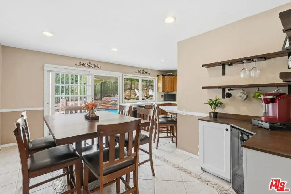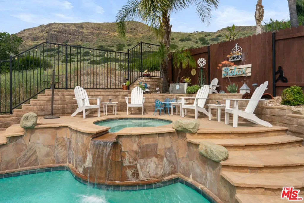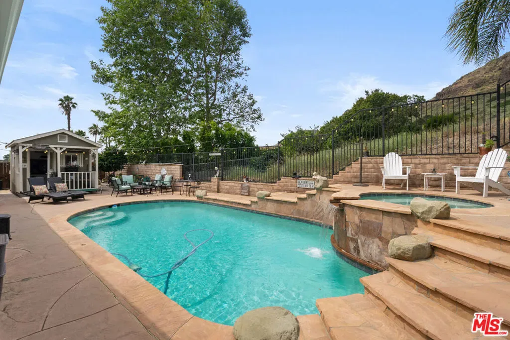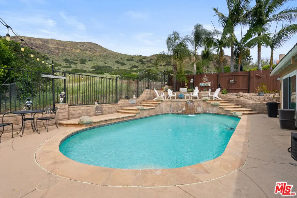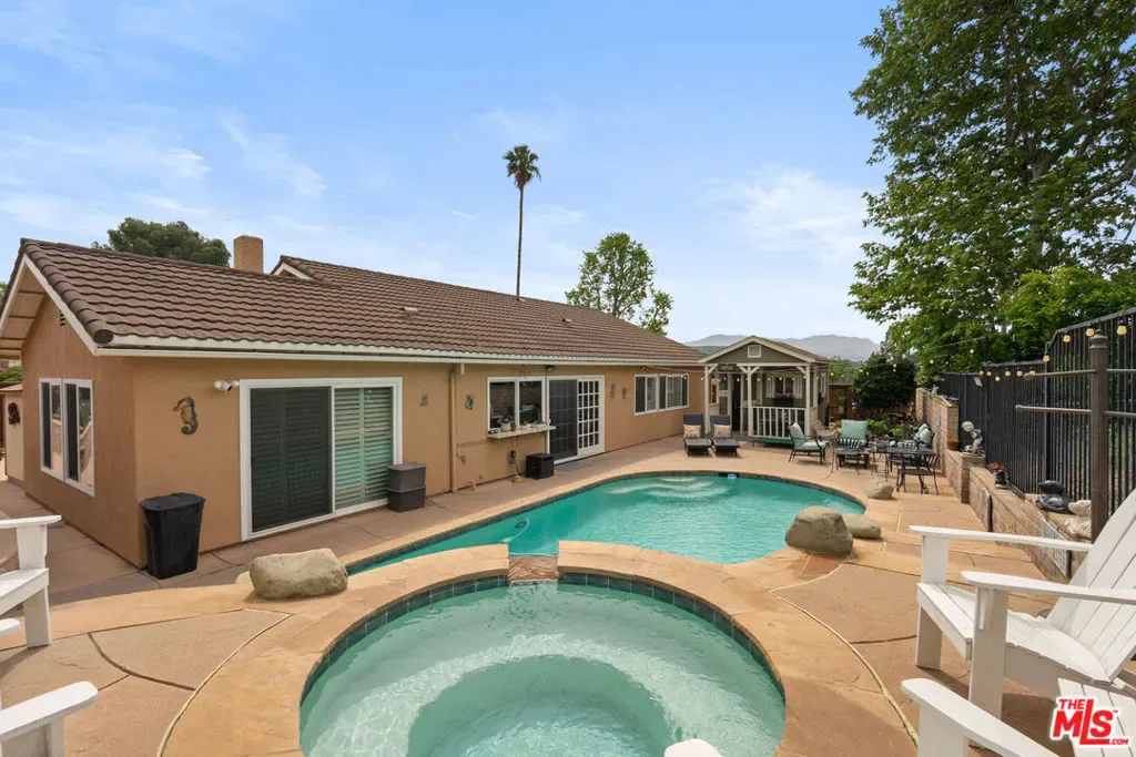 Nestled in the highly desirable Wildwood enclave of Thousand Oaks, this beautifully maintained 4-bedroom, 2-bath residence offers 1,765 square feet of comfortable living with serene natural surroundings. Backing to the scenic trails of Wildwood Regional Park, the home enjoys peaceful hillside views and direct access to one of the area’s most treasured outdoor amenities – a rare and coveted backdrop for everyday living. Inside, the home features a thoughtful, functional layout with inviting living spaces designed for both relaxation and connection. Natural light fills the interiors through dual-pane windows, complemented by plantation shutters and recessed lighting that enhance the bright, welcoming atmosphere throughout. The bedrooms are generously sized, offering flexibility for family, guests, or a home office. Step outside to a private backyard retreat where a sparkling pool and tranquil setting provide the perfect space for entertaining or unwinding. The grounds feature hardscaping in both the front and back yards, along with low-maintenance landscaping enhanced by a drip irrigation system and custom front yard lighting. A mature navel orange tree adds charm and character, while wrought iron fencing in the backyard preserves the scenic views beyond. With open trails just beyond the property, nature truly becomes an extension of your backyard. Additional highlights include RV access with a 30-amp hookup, a spacious garage with custom-built cabinetry, and an existing storage shed for added functionality. Located within the award-winning Conejo Valley Unified School District and moments from parks, hiking trails, shopping, and dining, this home offers the ideal balance of peaceful living and everyday convenience. A wonderful opportunity to own in one of Thousand Oaks’ most sought-after neighborhoods.