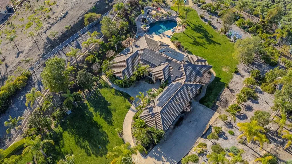 A dramatic 600-foot private driveway creates a grand sense of arrival and leads to a beautifully designed estate featuring six bedrooms, five bathrooms, a three-car garage, and extensive guest parking. A new state-of-the-art solar system enhances efficiency while complementing the home’s luxury profile.