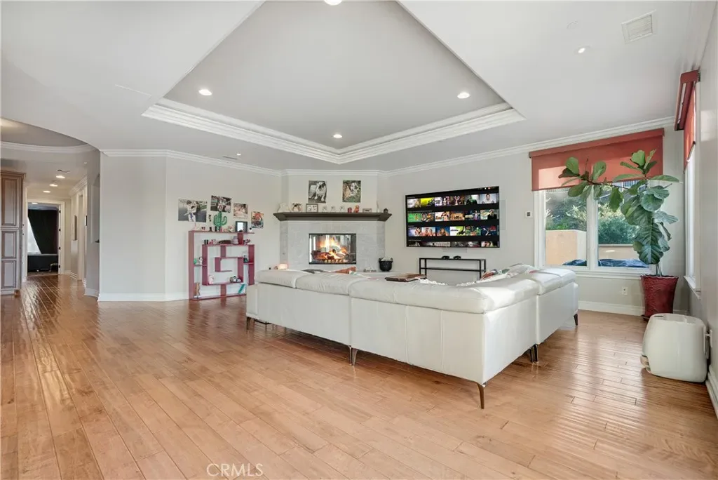 Inside, soaring ceilings, refined architectural details, and expansive windows fill the home with natural light and frame stunning views. The chef’s kitchen showcases a large center island, quartz countertops, custom cabinetry, walk-in pantry, and premium appliances, flowing seamlessly into a spacious family room ideal for both intimate gatherings and large-scale entertaining. The primary suite is a private retreat with a fireplace, custom walk-in closet, and spa-inspired bath.