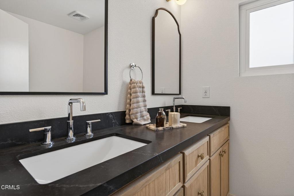 Beautifully renovated home in coveted Sunset Hills with VIEWS! Uniquely positioned with no home directly across, this 4 bedroom, 2.5 bath, 2200+sf residence offers a rare sense of openness- oriented to capture sweeping views of the Santa Monica mountains and Conejo Valley.A stunning front living room welcomes you with a warming brick fireplace and large picture window that frames the surrounding landscape- bringing nature, prime views and magical sunsets right into the home. Flawlessly reimagined by Maverick Designs with a contemporary organic design, the home is grounded with natural elements and neutral tones- blending modern style with warmth and livability.At the center of the home, the newly renovated wraparound kitchen is designed for connection. It flows directly into the dining room, front living space, and out to the deck & backyard –making it just as perfect for slow mornings with coffee as it is for lively evenings with friends and family. Designed with all new contemporary details, it is a cook’s dream- beautifully appointed with new custom cabinetry, abundant storage and pantry space, quartz countertops, high-end appliances with Cosmo 6-burner gas stove, modern open shelving, Zelige tile backsplash, and elevated fixtures throughout. Adding to the home’s versatility, a separate downstairs family room offers a more private retreat, complete with its own fireplace, bar, upgraded guest bath, and sliders directly out to the back patio–ideal for hosting, multi-generational living, or creating a comfortable secondary living space.All four bedrooms are thoughtfully positioned on the second level, creating a dedicated and private retreat from the main living areas. The primary suite feels like a place to exhale, with a freshly renovated ensuite bath designed for both comfort and quiet luxury- complete with all new contemporary details- dual vanity, modern light fixtures, and new walk-in shower. Down the hall is another fully updated guest bath, along with three additional bedrooms-all of which enjoy an elevated perspective of the gorgeous views. Positioned in one of Thousand Oak’s most sought after neighborhoods, this home is conveniently located near freeway access, award winning schools, shopping, restaurants, trails, and all that beautiful Thousand Oaks has to offer!