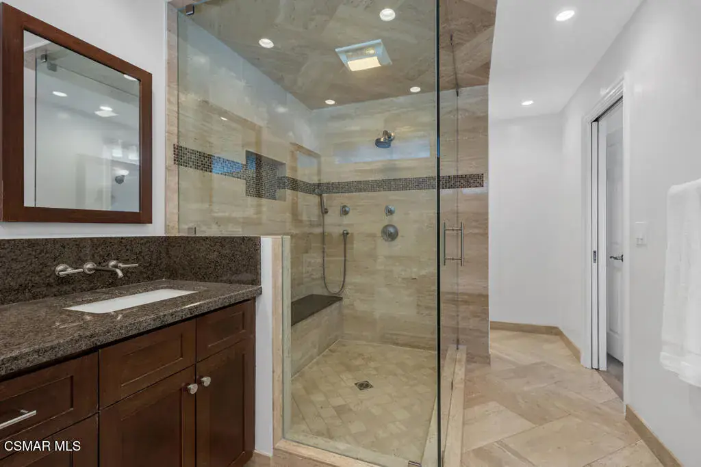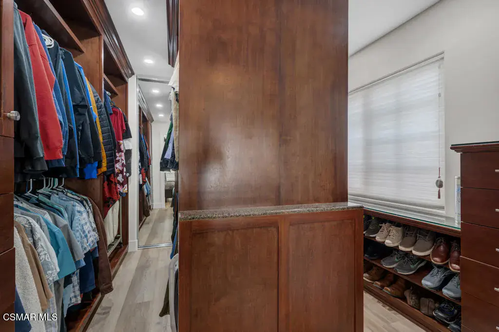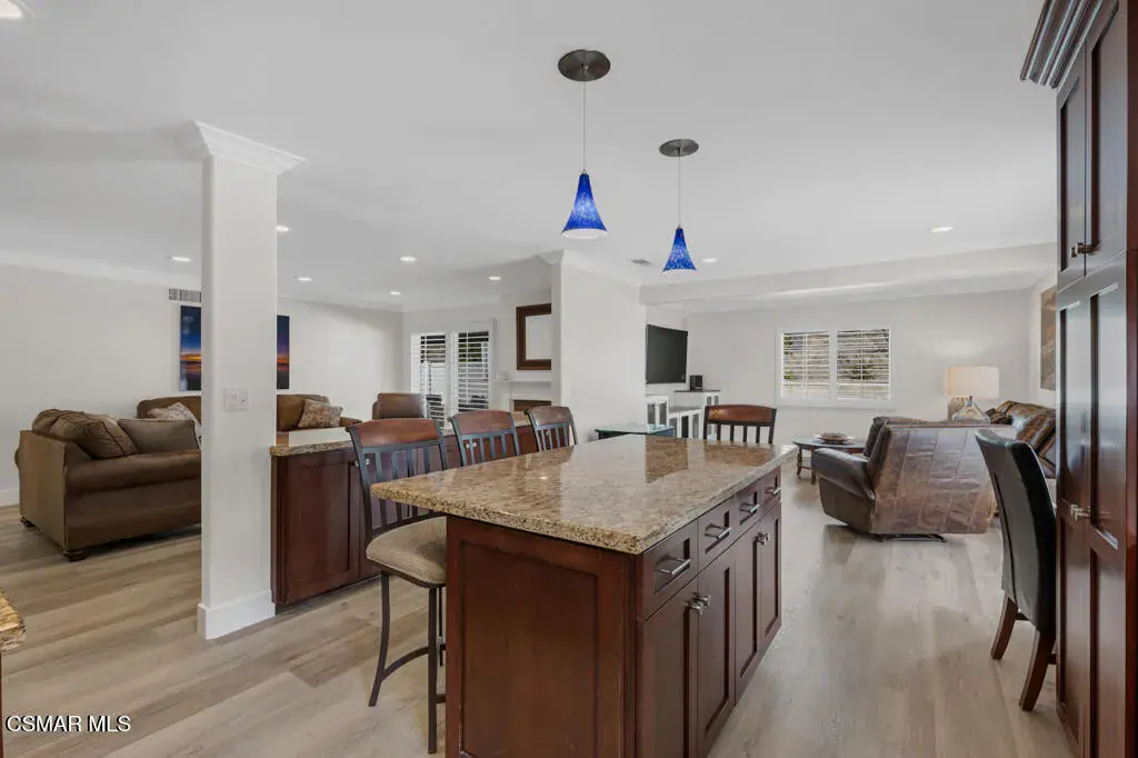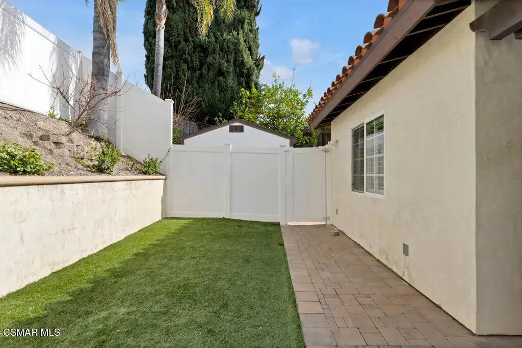 Beautifully Remodeled SINGLE-STORY Home with a PRIVATE Backyard, Massive Dedicated RV Access, and Exceptional Curb Appeal on a Quiet, Wide (NON-through!) Street in Newbury Park! Set on a generous 9,147 SqFt lot, this 3-bedroom, 2-bathroom residence has been thoughtfully upgraded inside and out, offering a functional and stylish layout for modern living. From the moment you arrive, this home impresses with its smooth plaster exterior, manicured drought-resistant landscaping, sculpted succulent beds, tall vinyl fencing, NEW wood-grain garage doors, and a wide paver-stone driveway that includes a dedicated RV access lane–complete with wrought-iron entry gate, fruit tree planters, and a TUFF Shed at the rear. The front porch entry is a showstopper, framed by wrought-iron gates, a tranquil water feature, and an elegant hanging chandelier light that makes a stunning first impression.Step through the UPGRADED double doors with decorative wrought-iron and tall window accents and you’re greeted by a BRIGHT, open interior with gorgeous wood-like flooring throughout. The formal Living Room is warm and inviting with tall sliding glass doors to the backyard patio, a handsome granite-surfaced gas fireplace, and built-in storage cabinetry topped with matching granite. The completely REMODELED Kitchen is a true standout–designed for both beauty and function. It boasts expansive granite countertops, natural wood SOFT-CLOSE cabinetry, tile backsplashes, a HUGE center island with breakfast bar seating, and stainless-steel appliances including a Cafe dishwasher, GE 5-burner gas range, built-in GE microwave, and a double-basin stainless sink. A pantry with pull-out shelving provides fantastic storage, and the adjacent Laundry Room (an individual room inside) bridges the Kitchen to direct garage access and is outfitted with granite counters and abundant cabinetry for linen and household needs.The Family Room is open to the Kitchen and serves as a cozy media space or entertaining zone with plantation-shuttered windows, a custom entertainment center, and sliding glass doors to the backyard patio. The Primary Suite is a spacious retreat featuring sliding doors with plantation shutters, recessed lighting, and upgraded ceiling fan. A pocket door leads to an INCREDIBLE custom walk-in closet (converted from a secondary bedroom), fully outfitted with built-ins and designed to impress. The remodeled Primary Bathroom offers upgraded vanities, beautiful tile flooring, and an expansive walk-in shower with mosaic-tile accent walls and built-in bench seating.Two additional Secondary Bedrooms offer tall baseboards, plantation-shuttered windows, and sliding wardrobe closets, while the NEWLY remodeled Hall Bathroom (completed October 2025) shines with its quartz-topped vanity, makeup station, and a stylish tile-walled shower featuring sleek gold hardware. Every inch of this home has been thoughtfully cared for.Outside, the backyard is both peaceful and practical with artificial grass lawns, paver-stone patios, a large metal patio cover, and lush planters along the perimeter. The RV side yard is a rare and valuable feature–approximately 80 feet long, fully gated, with a 50-amp plug and an electric car charger, and flanked by a mini orchard featuring orange, lemon, lime, peach, apricot, nectarine, and plum trees! Additional upgrades include copper plumbing, updated electrical, and an upgraded A/C system with attic fan for year-round comfort.This incredible location also delivers the best of Newbury Park living with WALKABILITY to Lynn Oaks Park–offering basketball courts, playgrounds, and soccer field green space–and CLOSE proximity to Los Robles hiking & biking trails, Wildwood Park, and Dos Vientos recreation areas. Zoned for award-winning Conejo Valley Unified Schools and just minutes to the 101 Freeway, shopping, and dining–this is an extraordinary opportunity to own a turnkey home in a truly special neighborhood!