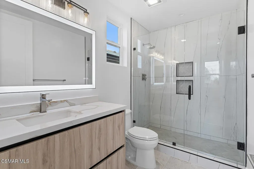 This exquisitely designed, brand-new modern two-story residence is located in the heart of Thousand Oaks and offers approximately 3,718 square feet of expansive luxury living on a flat 7,180 square-foot lot. Available for immediate occupancy, the home features four generously sized bedrooms and four and one-half bathrooms, including a desirable first-floor guest bedroom with an attached bath, ideal for visitors or extended family. Each bedroom is thoughtfully appointed with its own en-suite bathroom, ensuring privacy, comfort, and refined living throughout.This exceptional home is a true showcase of superior design, craftsmanship, and attention to detail, both inside and out. The residence reflects uncompromising quality and elevates the surrounding neighborhood with its sophisticated architectural presence. The open-concept floor plan effortlessly blends indoor and outdoor living, creating a seamless, inviting flow that is both functional and visually striking. Inside, the home offers a formal living room, dining room, and a spacious great room/family room, all finished with contemporary flooring, designer touches, and high-end materials including Italian cabinets.The chef’s kitchen is a true centerpiece, featuring an oversized island, elegant quartz countertops, and premium Thermador appliances, perfectly suited for both everyday living and entertaining. Ten-foot ceilings throughout enhance the sense of space and light, appealing even to the most discerning buyer. The primary bathroom serves as a private retreat, highlighted by a frameless glass shower and sleek quartz finishes.The home enjoys serene panoramic views of the Santa Monica Mountains along with stunning sunsets, providing a peaceful backdrop to everyday living throughout the year. This private enclave by Hydam Homes is situated directly across from the prestigious, multi-million-dollar Lonestar Estates, also thoughtfully developed by Hydam Homes, further enhancing the desirability of the location.Located on the quiet cul-de-sac of Toyon Court, this home offers an exceptional balance of luxury, privacy, and comfort. Hydam Homes invites you to become part of this exclusive community of just nine residences. This remarkable new home presents a rare opportunity to enjoy timeless elegance, lasting tranquility, and exceptional value in one of Thousand Oaks’ most desirable settings.