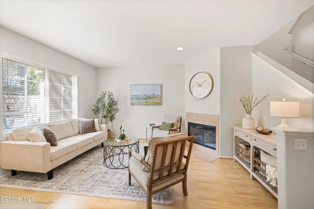Located in the highly desirable Villas of Westlake, this rare 4-bedroom townhome offers an ideal blend of comfort, style, and convenience–just minutes from the heart of Westlake Village. This spectacular turnkey residence features a thoughtfully designed, light-filled floor plan with soaring ceilings and a spacious living room accented by a cozy fireplace.The kitchen features ample cabinetry, granite countertops, dual ovens, and opens seamlessly to the dining area–perfect for both everyday living and entertaining. A charming breakfast nook leads to a private patio, ideal for morning coffee or relaxed outdoor enjoyment. All four bedrooms are conveniently located upstairs, including a generously sized primary suite with a walk-in closet and an en-suite bath offering dual vanities, a soaking tub, and a separate shower.Additional highlights include in-unit laundry, a 2-car attached garage with direct access, ample guest parking, and a cozy front patio enhanced by mature lemon and tangerine trees. Residents enjoy access to the community pool and spa, perfect for soaking up sunny California days. Ideally situated just minutes from the 101 Freeway, Westlake Promenade, and The Lakes Shopping Center, this home provides exceptional proximity to shopping, dining, and everyday amenities.