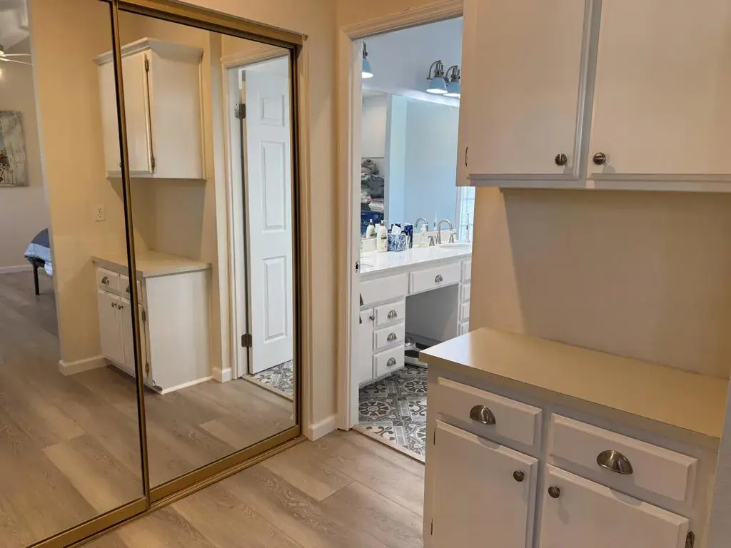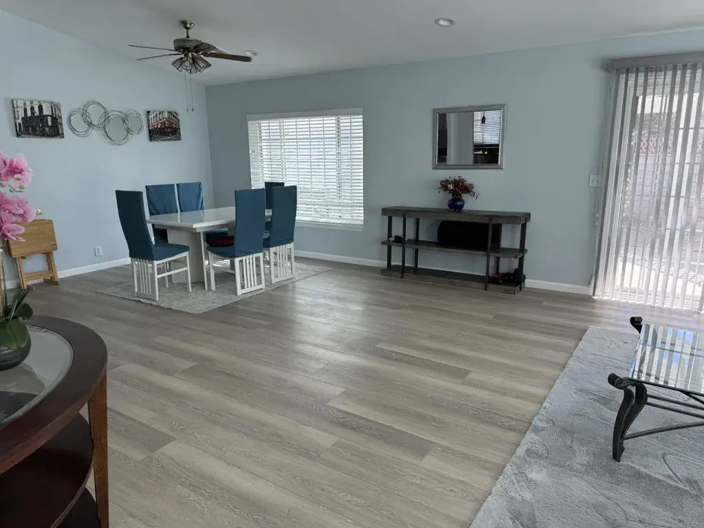 Welcome to the this beautifully upgraded home in Ivey Ranch Country Club. Situated on a quiet cul-de-sac, this 3 bedroom 2 bath home offers comfort, privacy and resort style living at it’s finest. The home features laminate flooring, recessed lighting and a modern kitchen with granite counter tops, and an under the sink water filtration system. Both bathrooms are thoughtfully upgraded with bidets and the primary bathroom has a Spa-Tub as well. The A/C is approximately 1 1/2 years new and the low-maintenance landscaping that includes synthetic grass enhances curb appeal while keeping upkeep simple. The home is equipped with a full security system and cameras surrounding the property for added peace of mind. A long private driveway leads to an oversized 3 car garage (Approximately 30′ x 30′ – 900 Sq Ft) complete with work benches and a 220 volt outlet for EV charging – perfect for car enthusiasts, storage and a workshop. The back yard features a covered patio and Spa ideal for relaxing after a day on the Golf Course or Entertaining Guests. This exceptional home combines luxury, convenience and lifestyle in a desirable Over 55 Community. Ivey Ranch CC & GC, is a gated, senior community of manufactured homes integrated with a 9 hole golf course, Pro-shop, Driving Range, 4 community pools, 2 community spas, Club House and a Seasonal Restaurant. In Ivey Ranch you own the land.