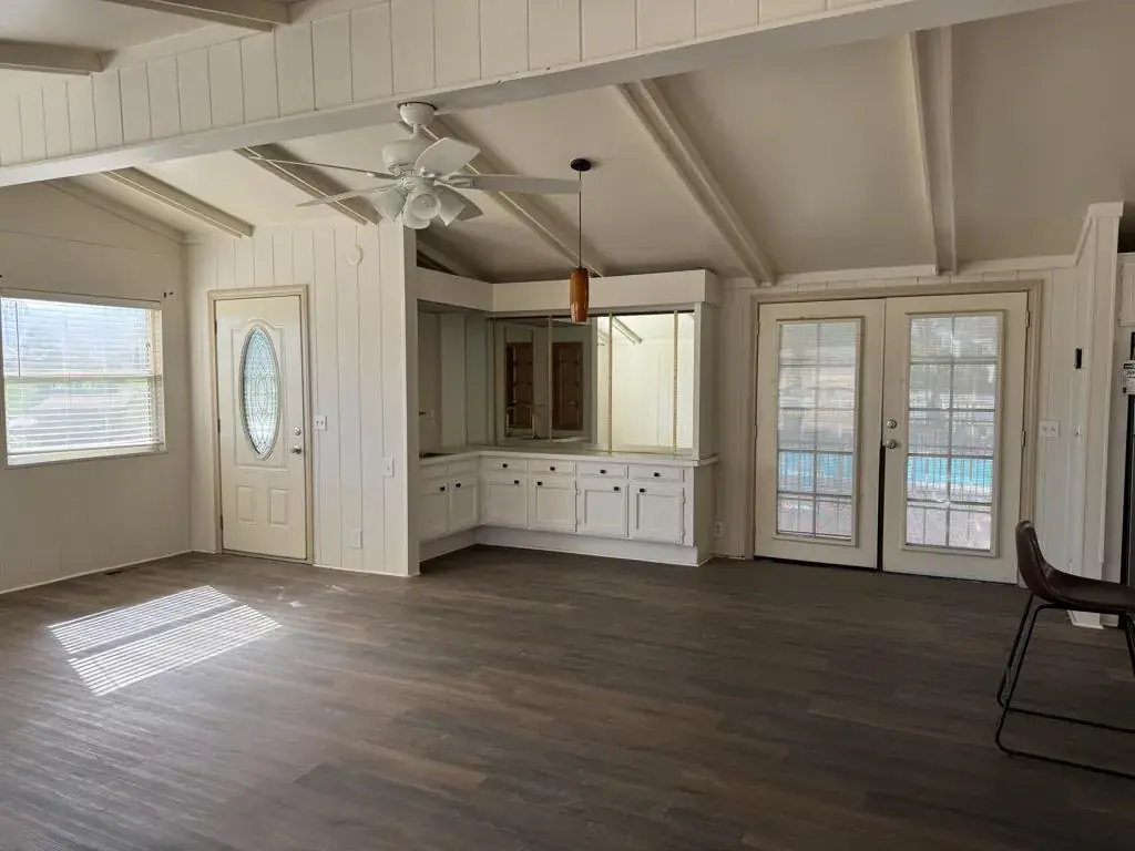 On The Golf Course in Ivey Ranch – With a Pool! This home has an open plan with a large great room. Beautiful Mountain and Fairway views from the Pool and the Covered Patio. Stucco Siding and New Laminate Flooring throughout. Ivey Ranch CC & GC, is a gated, senior community of manufactured homes integrated with a 9 hole golf course, Pro-shop, Driving Range, 4 community pools, 2 community spas, Club House and a Seasonal Restaurant. In Ivey Ranch you own the land. This home has a 413 Permanent Foundation and is ready for financing.