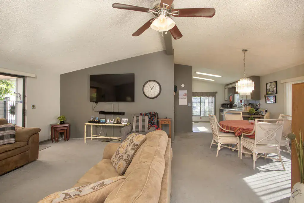 This comfortable beautifully maintained 2-bedroom, 2-bath manufactured home sits in the highly desirable Ivey Ranch gated 55+ golf community with easy access to everything in the community. You own the land where this home sits on a permanent foundation (w/433 A certificate). Bright and inviting, the home offers open-concept living with a spacious kitchen, gas stove, new stainless refrigerator.and new efficiency water heater and refurbished A/C. Some furniture and household items will be included with the sale to ease your transition to your new home. Step outside to a large covered patio perfect for relaxing and large enough for group entertaining. Well manicured landscaping and a new front door plus new garage door with an oversized driveway makes a very attractive presentation of this lovely home.Over 1300 sq. ft means both bedrooms are quite spacious including a walk-in master closet. The community has a 9 hole golf course, Pro-shop, Driving Range, 4 community pools, 2 community spas, Club House and fitness center.Welcome Home!!