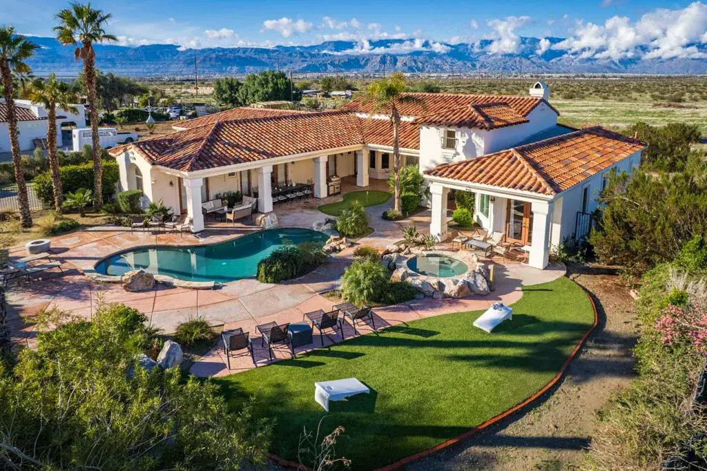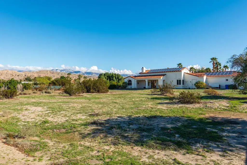 Discover this exceptional custom residence located on over an acre of land. Nestled on a neighborhood of million dollars estates. It certainly offers a truly unique living experience. An inviting and serene front setting welcomes you, completed with a beautiful resort-style pool & Spa, framed by an spectacular cover porch. The outdoors provides the perfect blend of comfort, tranquility and space for relaxation. The landscaping thoughtfully harmonize with the surrounding desert. This private sanctuary offers highly upgraded 4- spacious Bedroom, 3-Full Baths. The primary suite serves as a luxurious retreat with a spa-like bathroom, soaking tub and walk-in closet. Oversize 3- Car garage. The kitchen is a chef’s dreams. The extended kitchen island seamlessly combine kitchen with an open and cozy family room. The expansive windows facilitate to enjoy the magnificent panoramic views. A central vacuum system in place. The Property is perfect for HORSES, GOATS, and CHICKENS and all farm friends welcome. Ideal for contractors, Landscaping company or any home-based business in need of room for equipment. Offered FULLY FURNISHED & READY TO MOVE IN!! Solar system fully owned is included in sale. Within few miles from the newer Acrisure Arena, easy access to I-10 Fwy and yet privacy at it best!!