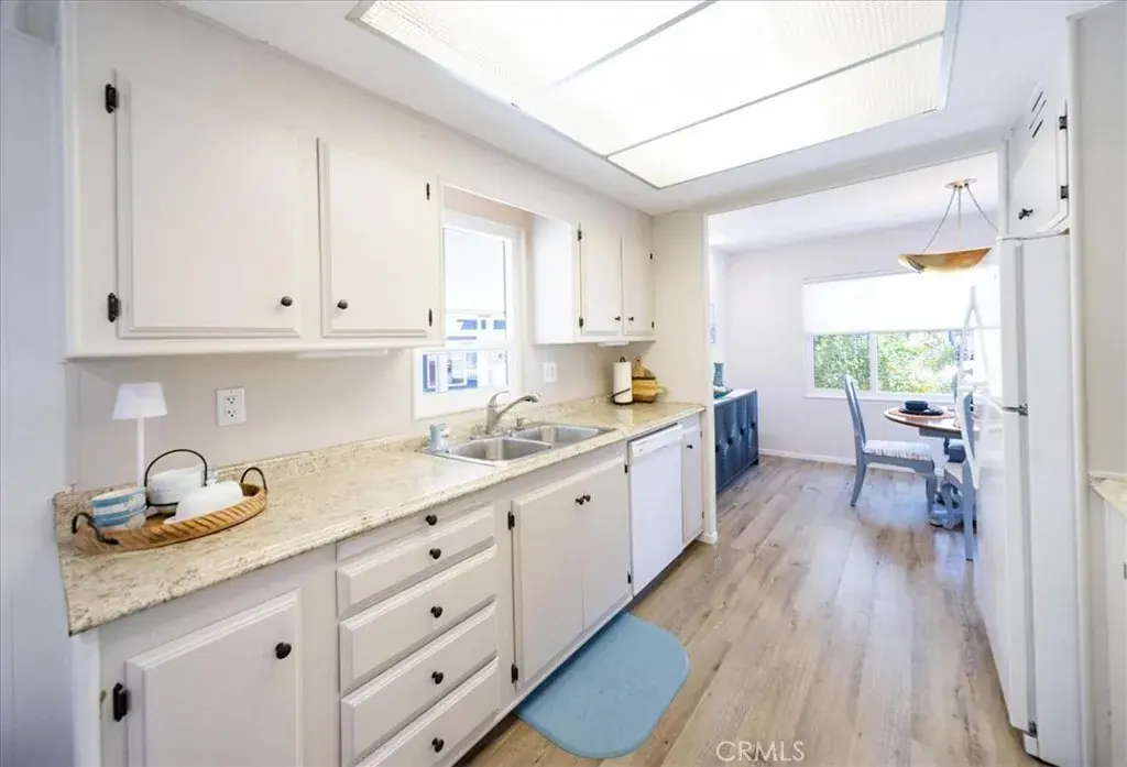 Welcome to your new, exquisitely decorated, Turnkey home, where you own the land! It was completely remodeled just a few years ago. As you enter you’ll notice an abundance of natural sunlight throughout providing for a warm and relaxing environment. It boasts Laminate Wood-like Flooring, Recessed Lighting, Ceiling Fans, and Dual Pane Windows throughout. It has fairly new Fresh Paint, inside and out. The Master Bedroom is very spacious, while the second Bedroom provides a Murphy Bed for extra space when needed. Both Bathrooms were also remodeled with new Vanities. The Master Bathroom Shower showcases marble tile on the walls with a Mosaic pattern tile on the floor. The galley Kitchen offers a gas cooktop, double-ovens, and under cabinet lighting, just near the breakfast nook area. The Laundry Room provides ample space with plenty of storage. Additionally, your new home includes Free Golf for 2 residents, Pools, Hot Tubs, Tennis, Pickle Ball, and a Club House all included in the HOA. And finally, your new home comes completely furnished as is. Schedule your private tour today! $5,000 Buyer Credit for Closing Costs
