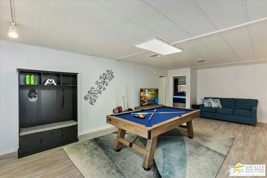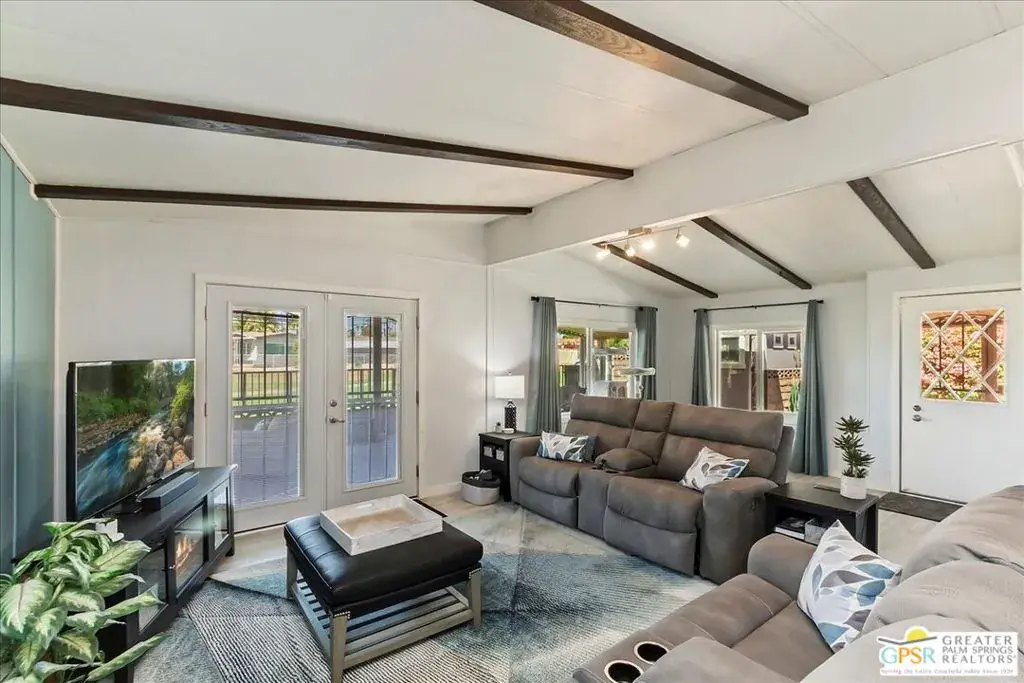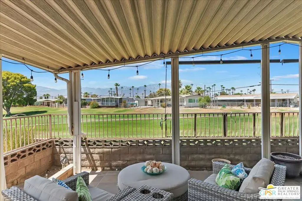 Beautifully remodeled triple-wide home in the desirable 55+ section of Tri Palms Country Club! This spacious 2 bed, 2 bath residence features a gourmet kitchen, large laundry room, sunroom, and a versatile family/game room. The oversized L-shaped patio, designed with multiple conversation areas including space for a firepit, offers stunning mountain and golf course views perfect for entertaining or relaxing at sunset. Tasteful decor and thoughtful upgrades make this home move-in ready, and it is being sold mostly furnished (list available from agent; additional items may be purchased outside escrow). Two storage sheds are included, along with citrus trees that enhance the outdoor charm. Low HOA dues ($172/yr) and monthly club fees ($334.41/mo) include unlimited golf for two owners plus access to pools, spas, tennis, pickleball, and shuffleboard courts, as well as the clubhouse, restaurant, and a variety of social activities. Best of all, you OWN the land in Tri Palms! Conveniently located near shopping, dining, casinos, Costco, and world-class medical facilities. Eligible for conventional financing. Welcome home!
