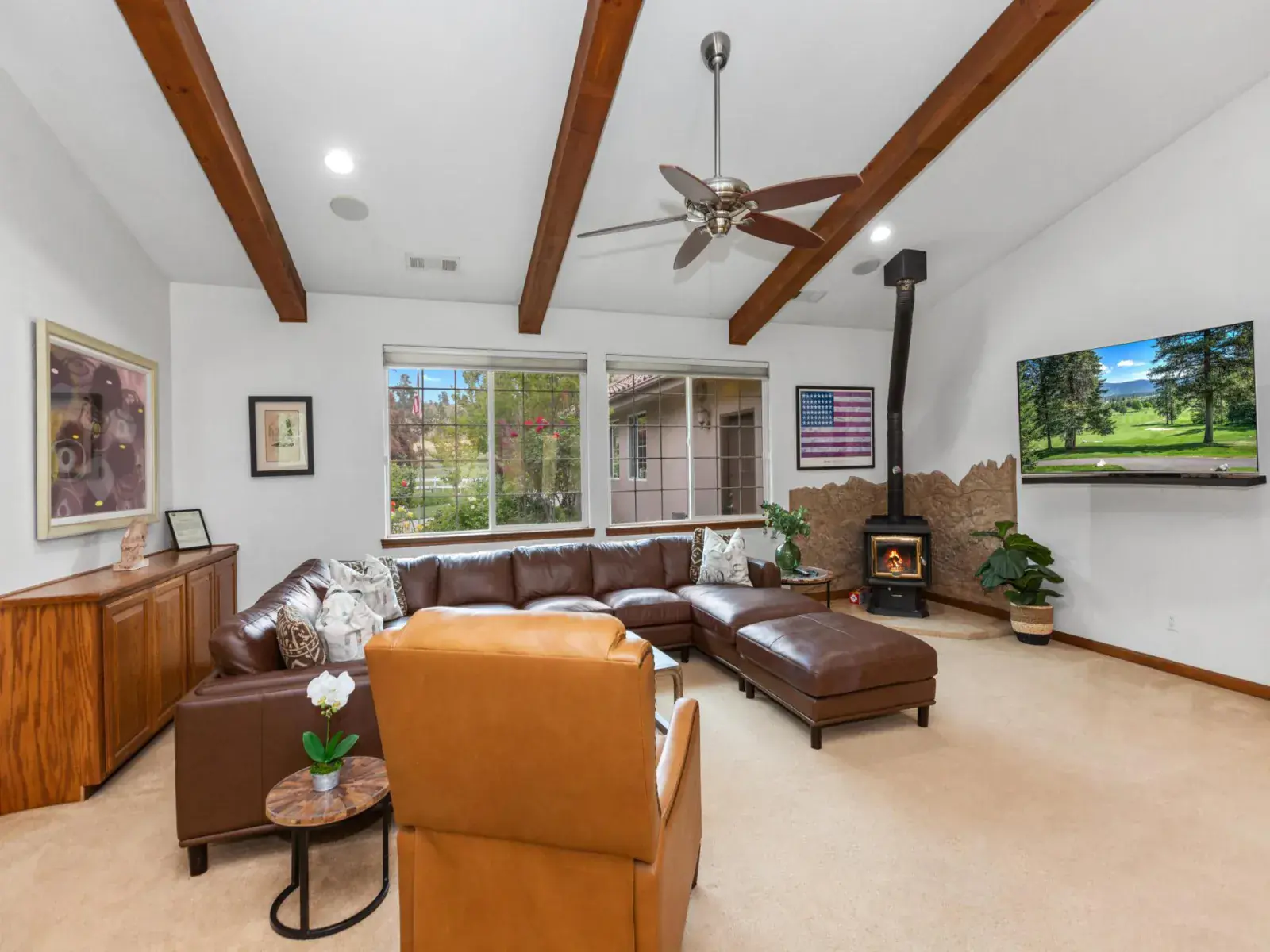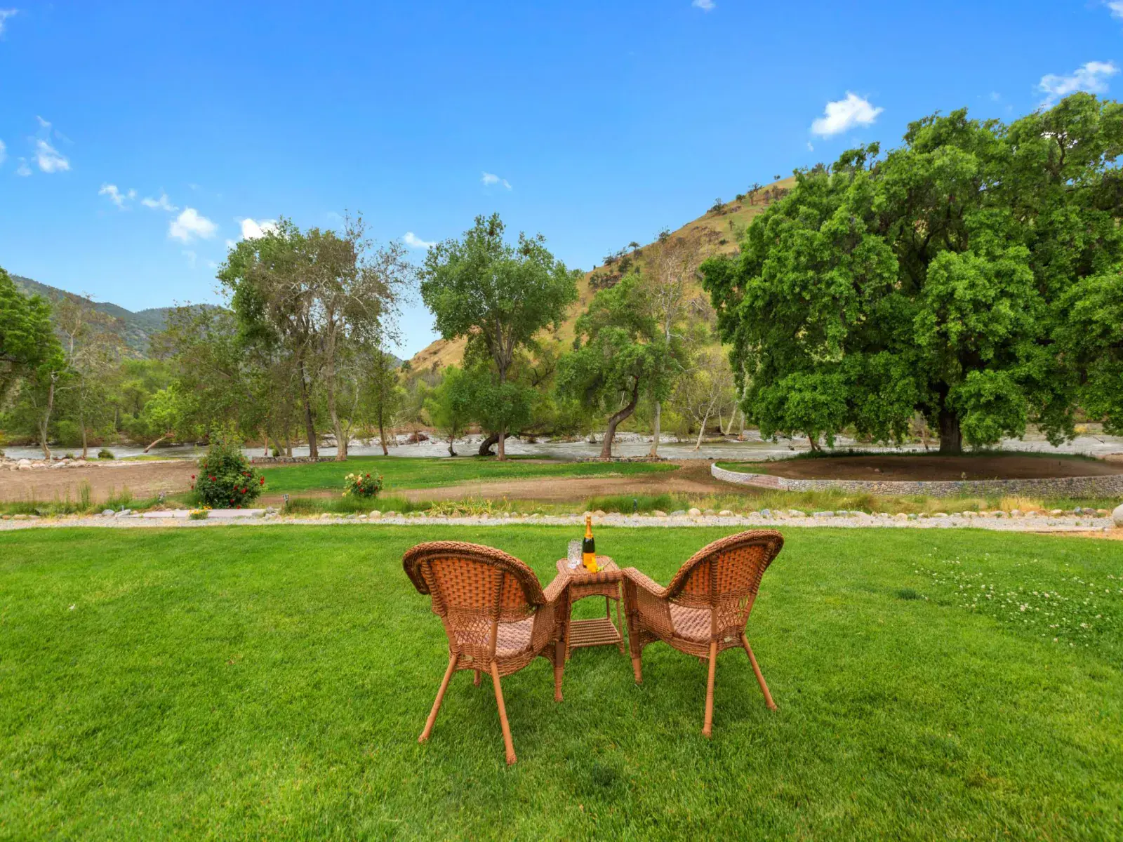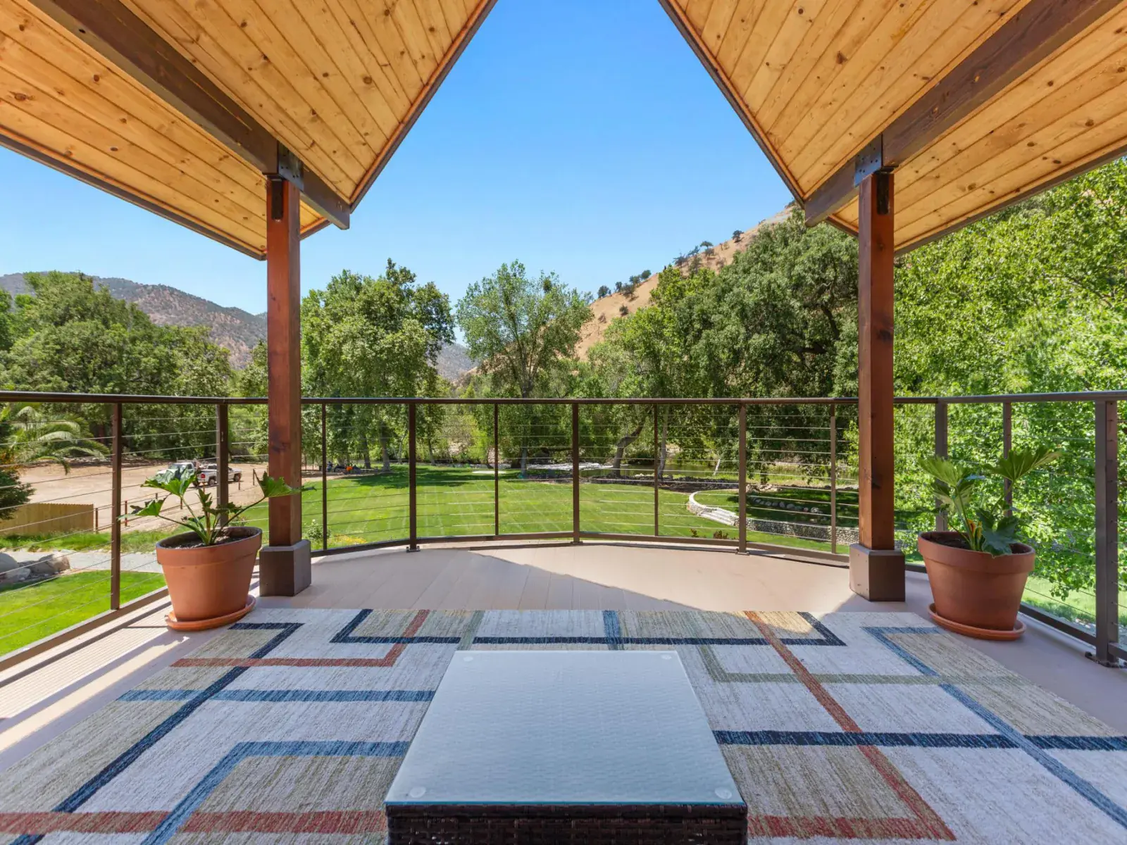 When you want to relax , stretch out on large viewing deck that soars above the main home offering spectacular views of the river and mountains beyond. It’s an entertainer’s delight!