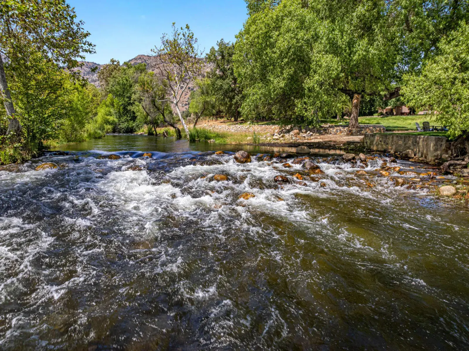 Just sit back on the sandy beach and enjoy the river life. Occasionally, in the springtime and early summer, you will experience the excitement of watching the rafters and kayakers maneuvering by!