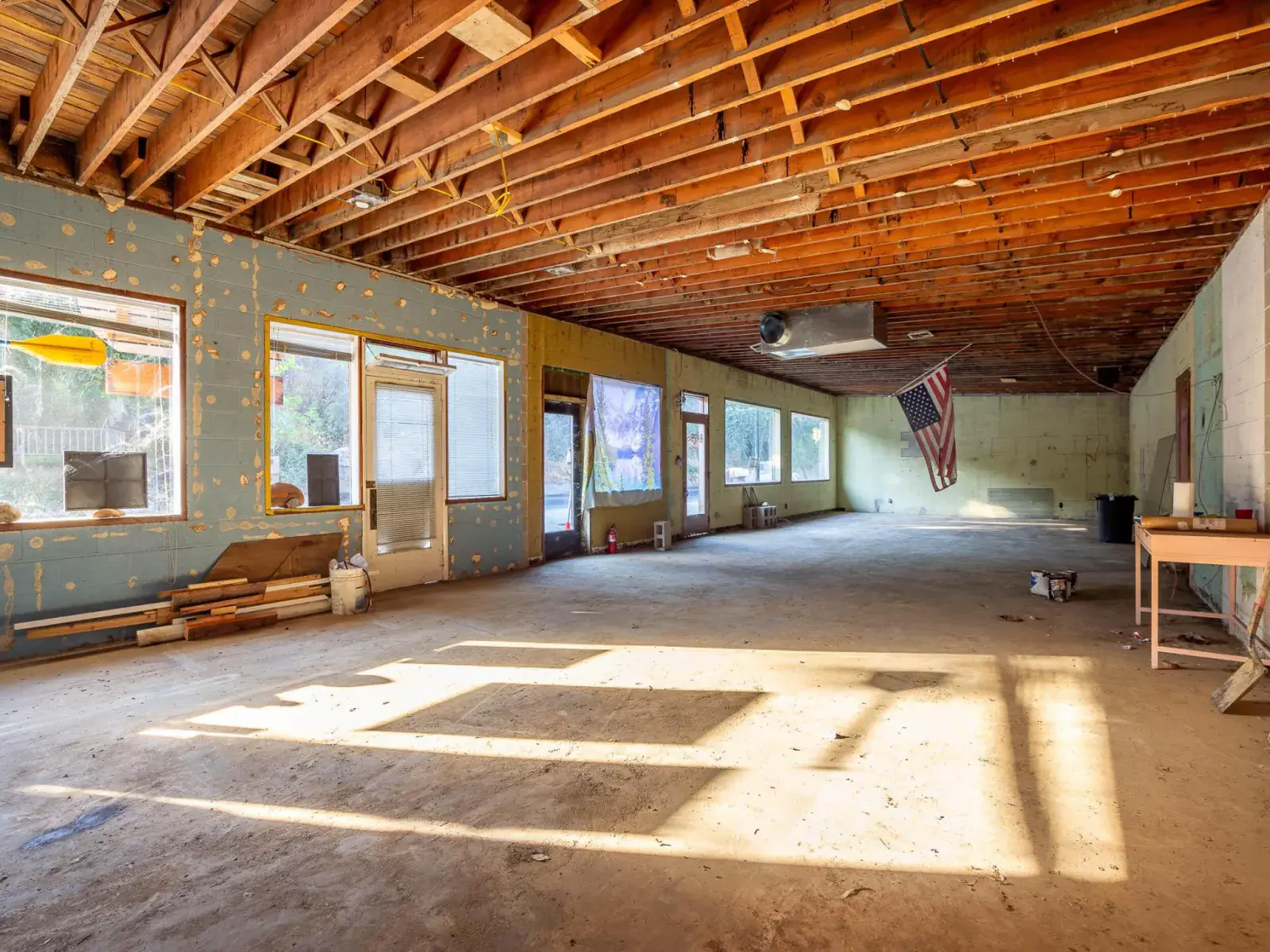 The block building features mid-century architectural character and has been fully gutted, creating a true blank canvas for a customized build-out. Recent capital improvements include a brand-new roof and a new HVAC system, allowing a future owner to focus resources on design and function rather than major infrastructure.