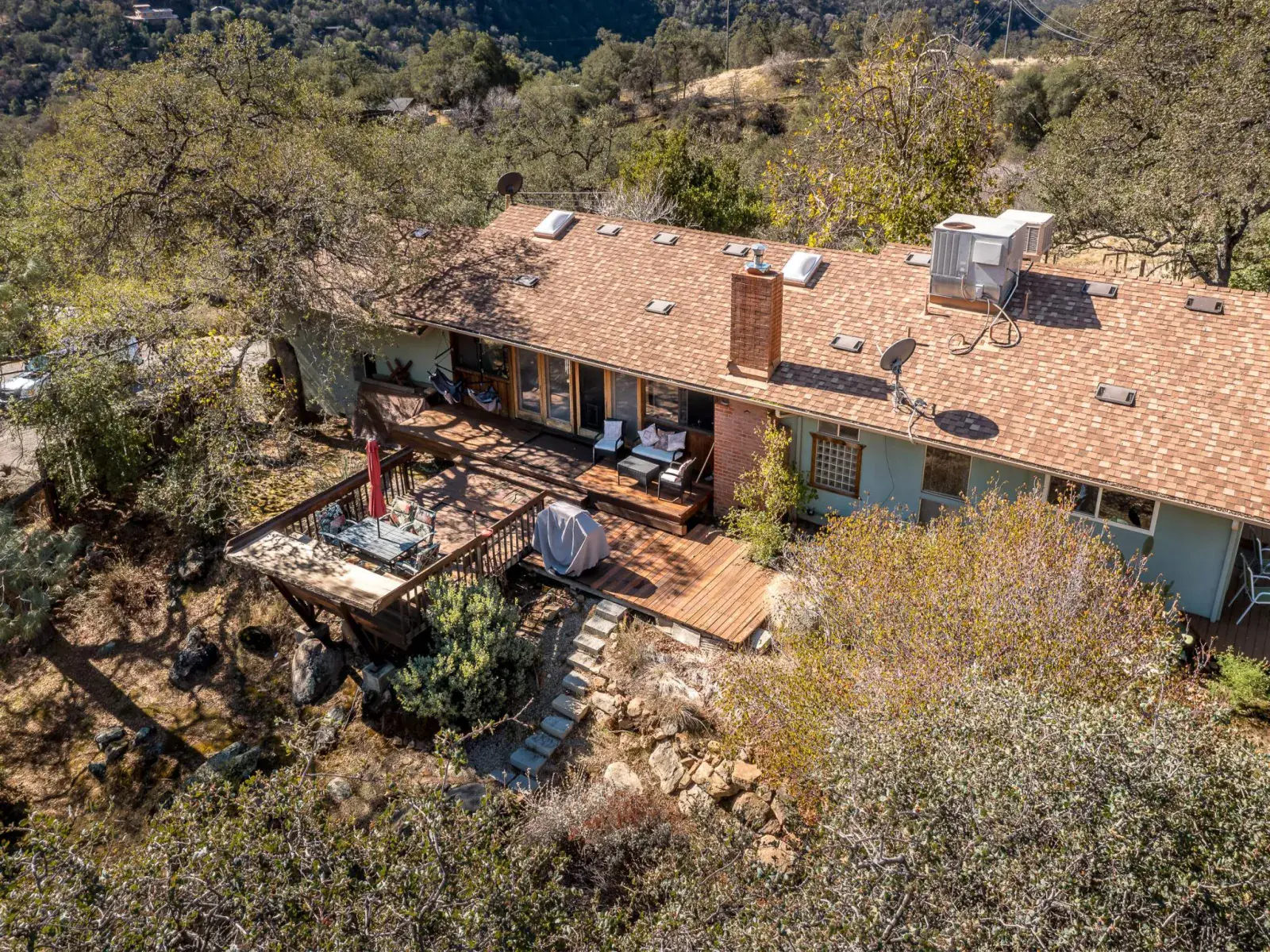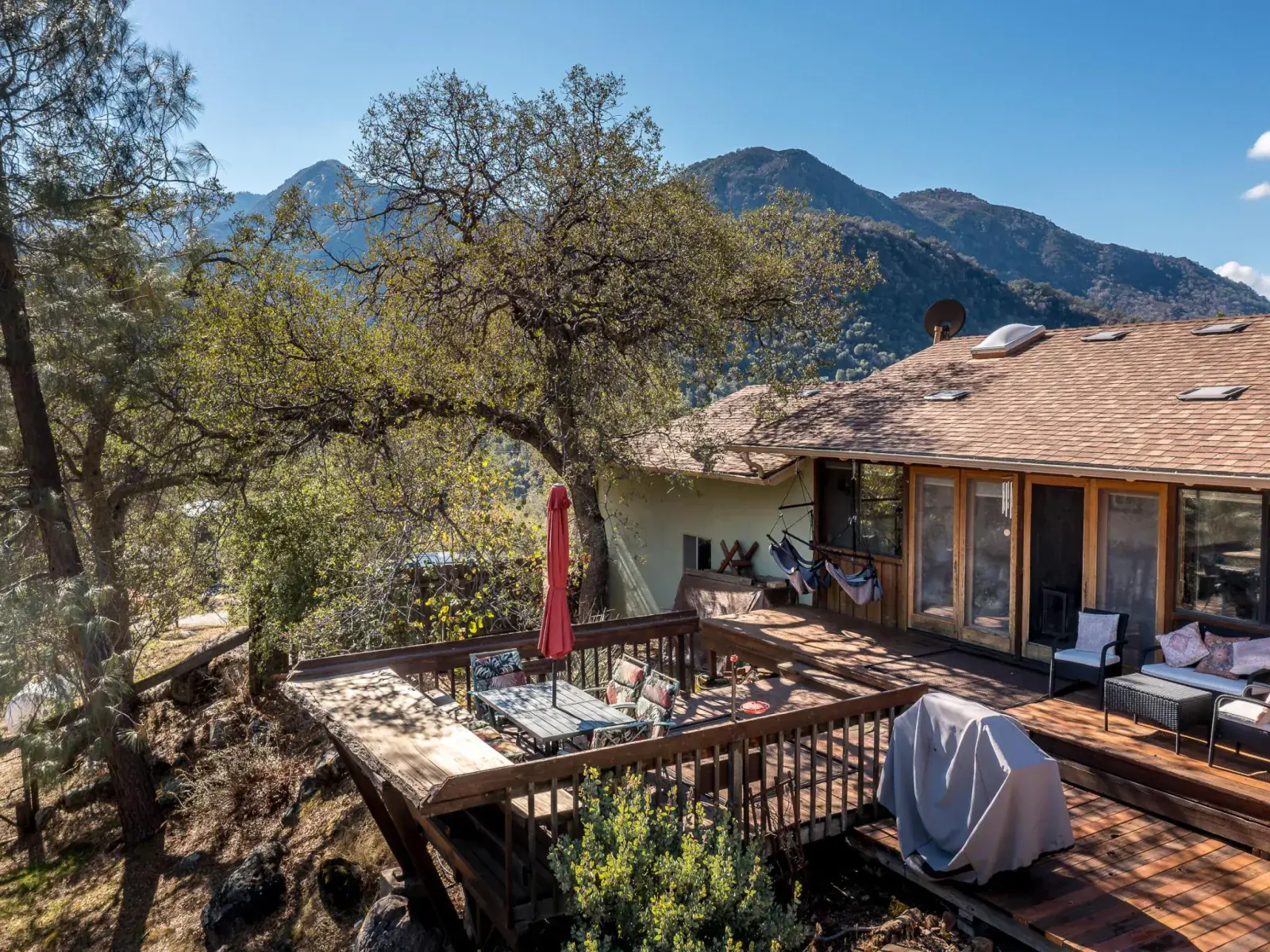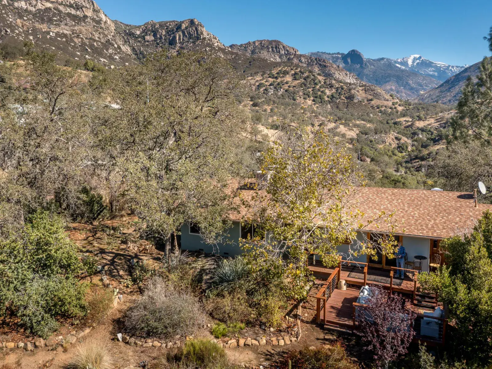 Have you ever dreamed of having your own private, secluded retreat within the boundaries of one of America’s premier National Parks? If so, this property is a veritable dream come true. Located inside the southern entrance to Sequoia National Park, 4.5 acres of private seclusion and stunning views, amongst just a handful of private land inholdings; this property is truly unique and one-of-a-kind. Upon entering the home, you will be instantly stunned by the magnificent unimpeded views up the Kaweah River valley and into the snow-capped high Sierra. Abundant windows provide for beautiful natural lighting along with the views. The open floor plan flows seamlessly from living to dining to kitchen areas and the updated kitchen boasts high-end finishes. Stately beamed wooden ceilings, wool carpeting and wood floors adorn this well-appointed home, providing for a cabinesque charm that blends with the surrounding environment while maintaining the fine comforts of being well thought-out. With 3 bedrooms and 1 3/4 baths, there is room for guests, in-home office, gym or craft room. Private decks in front and back with expansive views create additional outdoor living space for relaxing or entertaining while taking in the grandeur of Sequoia National Park and the surrounding foothills. Stroll along the multiple paths in the fenced and water-wise landscape or build an ADU, there’s plenty of room for both. Say goodbye to high electric bills; the solar panels are Seller-owned.