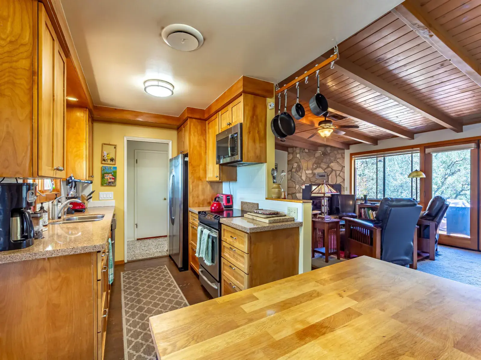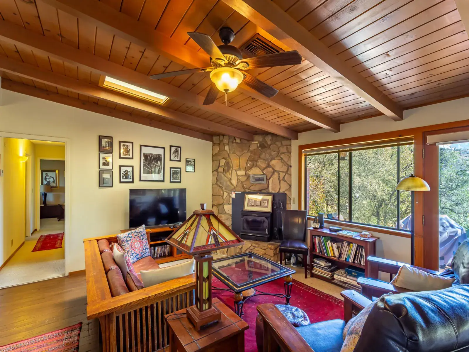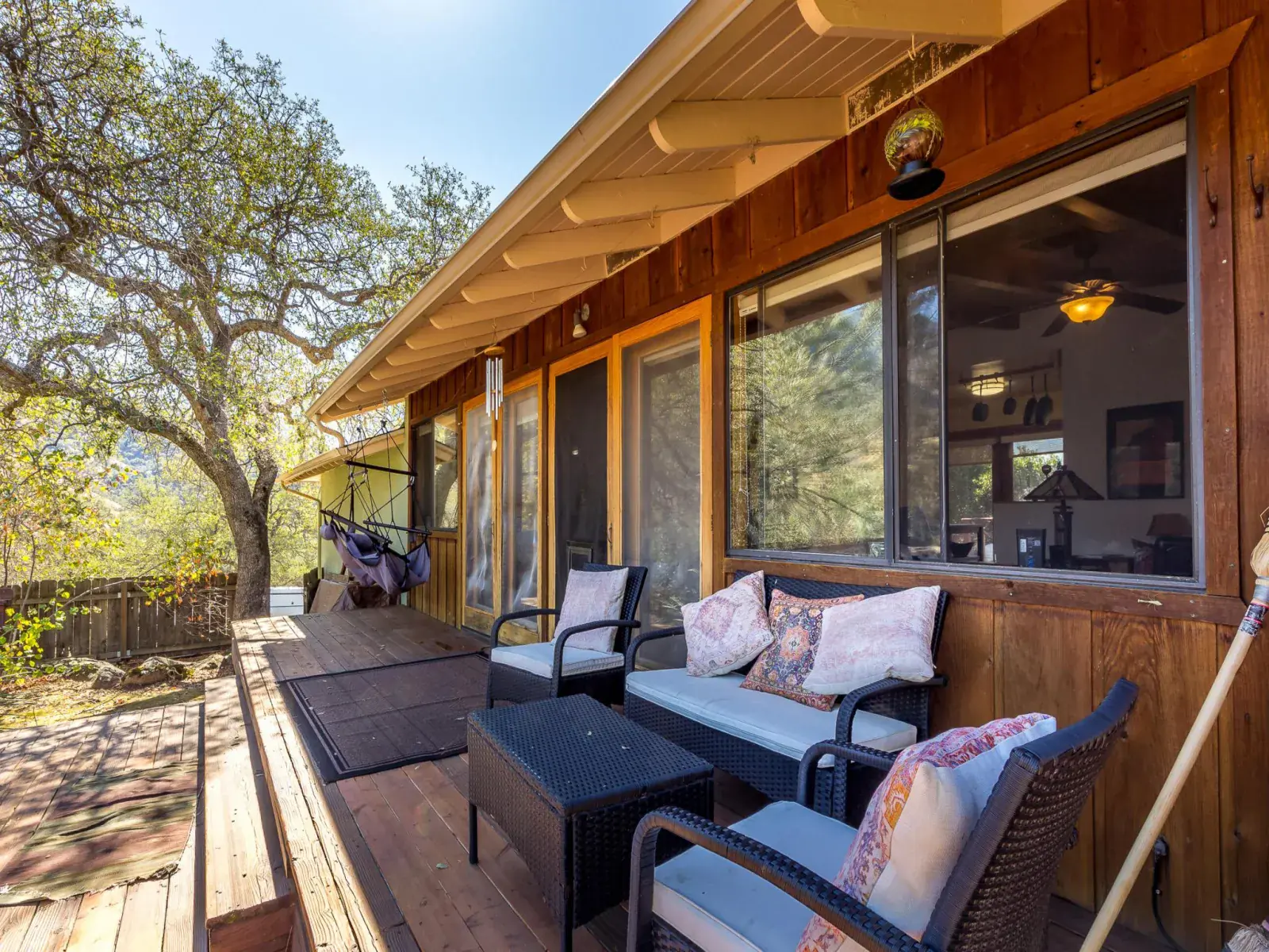 Have you ever dreamed of having your own private, secluded retreat within the boundaries of one of America’s premier National Parks? If so, this property is a veritable dream come true. Located inside the southern entrance to Sequoia National Park, 4.5 acres of private seclusion and stunning views, amongst just a handful of private land inholdings; this property is truly unique and one-of-a-kind. Upon entering the home, you will be instantly stunned by the magnificent unimpeded views up the Kaweah River valley and into the snow-capped high Sierra. Abundant windows provide for beautiful natural lighting along with the views. The open floor plan flows seamlessly from living to dining to kitchen areas and the updated kitchen boasts high-end finishes. Stately beamed wooden ceilings, wool carpeting and wood floors adorn this well-appointed home, providing for a cabinesque charm that blends with the surrounding environment while maintaining the fine comforts of being well thought-out. With 3 bedrooms and 1 3/4 baths, there is room for guests, in-home office, gym or craft room. Private decks in front and back with expansive views create additional outdoor living space for relaxing or entertaining while taking in the grandeur of Sequoia National Park and the surrounding foothills. Stroll along the multiple paths in the fenced and water-wise landscape or build an ADU, there’s plenty of room for both. Say goodbye to high electric bills; the solar panels are Seller-owned.