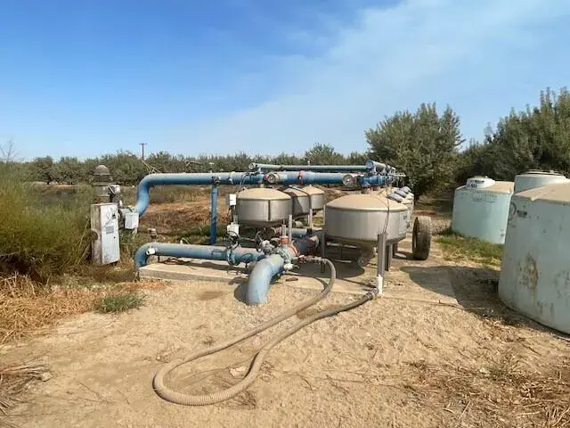 Approximately 400 acres in Tipton. 240 acres Almonds (Non-Pereil, Monterey and Independence) in 2018-2019. 120 acres planted to Golden Hills Pistachios in 2014-2015. There are two sources of water, 4 wells and in Lower Tule Irrigation District. Reservoir with Sand Media filter with VFD Pump. SGMA rules can affect the level of groundwater pumping. Call Lower Tule Irrigation District to confirm.