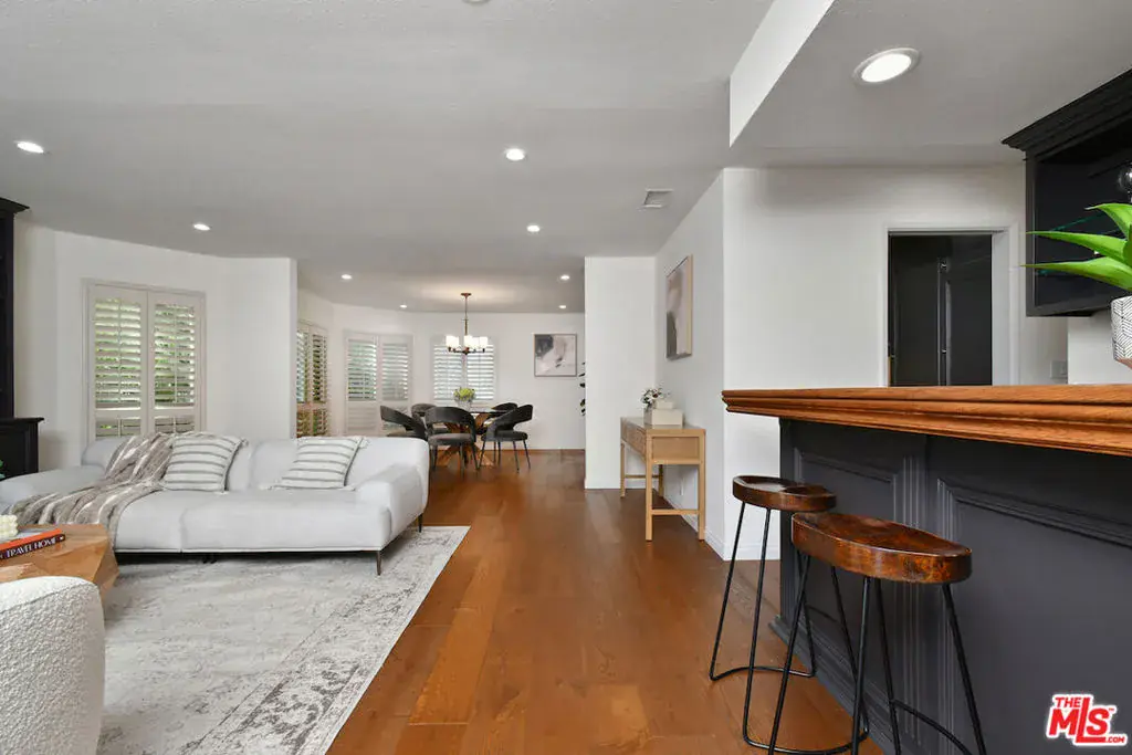 Experience exceptional living in the heart of Toluca Lake. This beautifully updated three-bedroom, three-bath condominium offers an expansive 1,904 square feet of single-level living space, an uncommon find in the area, where most condominium homes are smaller and multi-level. The open floor plan flows effortlessly between the living, dining, and kitchen areas, creating a versatile environment ideal for both relaxing and entertaining. The renovated kitchen features marble countertops, stainless-steel appliances, and modern cabinetry, complemented by recessed lighting, wood floors, and custom built-ins throughout. Dual-pane windows ensure a quiet, serene atmosphere, while an updated HVAC system and in-unit laundry provide comfort and convenience. Step onto the front-facing balcony to enjoy the breeze and tree-lined views while sipping your morning coffee, or enjoy the outdoors and explore the best of Toluca Lake Village. Discover neighborhood favorites like Prosecco Trattoria or Hungry Crowd for dinner, Gelson’s or Trader Joe’s for your daily shopping, and cap the evening with a show at the Garry Marshall Theatre. Additional features include a security system, two side-by-side parking spaces, ample storage, and access to a community pool and recreation room. Combining generous square footage, thoughtful updates, and an unbeatable location, this residence perfectly captures the inviting charm and vibrant lifestyle that make Toluca Lake one of Los Angeles’ most desirable neighborhoods.