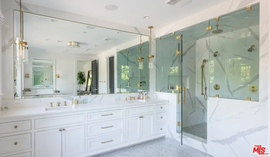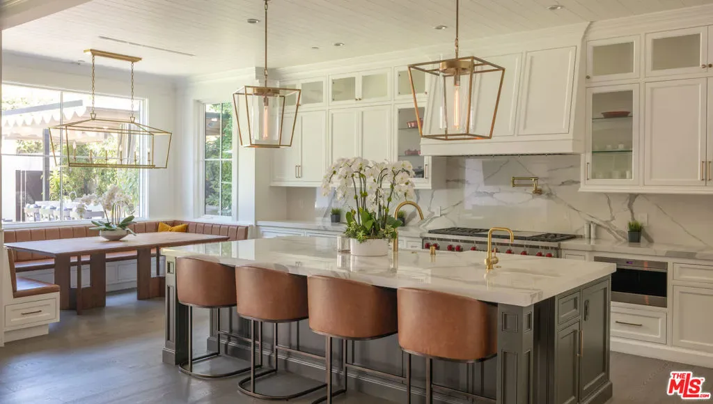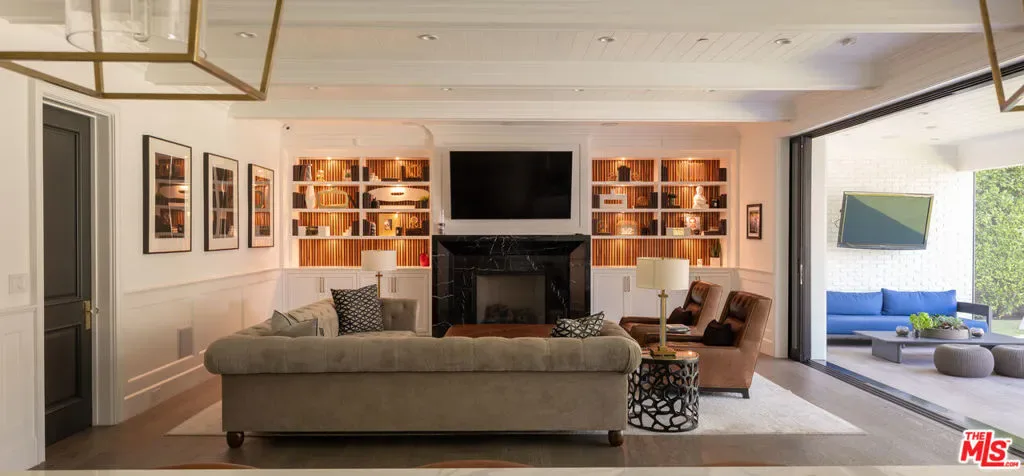 Set on an expansive 10,802 sqft lot in a prime Toluca Lake, this exceptional custom built traditional home offers the pinnacle of sophisticated California living. Designed and constructed by the acclaimed Hunter Homes LA, the home features 5 bedrooms, 6 bathrooms, along with a separate pool house with its own bathroom. The Cape Cod inspired residence masterfully combines timeless design with modern living. A dramatic entry hallway opens to an expansive open-concept layout, seamlessly connecting the formal living and dining rooms, home theater, and generous family room. The gourmet kitchen is thoughtfully appointed with Wolf and Sub-Zero appliances, dual dishwashers, porcelain countertops and backsplash, a built-in microwave, wine refrigerator, and an impressive center island with dual farmhouse sinks and bar seating. Upstairs, a luxurious primary retreat showcases custom wood paneling, designer lighting, a fireplace, dual walk-in closets, and a spa-like primary bath. Additional amenities include Control4 smart home automation, three fireplaces, a temperature-controlled wine cellar, custom built-ins, surround sound, oak hardwood flooring, and an array of refined finishes throughout. Walls of floor-to-ceiling pocket glass doors lead to a beautifully landscaped entertainer’s backyard featuring a covered patio, pool & spa, fire pit, full barbecue island, and spacious rear and yards.