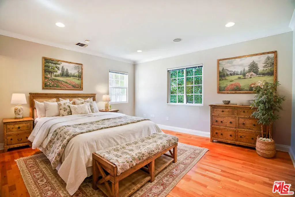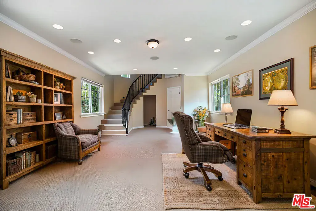 EXQUISITE GATED HOME WITH TWO-STORY GUEST HOUSE IN TOLUCA LAKE! This Spanish-Mediterranean estate with Santa Barbara flair spans 8,500 sq ft (apx) with 8 beds/8 baths across multiple structures on an expansive, flat 3/4-acre (apx) lot. A fully contained two-story guest house overlooks the saltwater pool and gardens, each level with 2BR/1BA, its own kitchen, and laundry. Ideal for multi-gen living, creatives, or excellent income potential. The primary residence adds a dedicated office with a kitchenette and a turret room with a separate entrance, plus a gym, tucked-away movie theater, and a custom “catio” to keep your cat or dog safe. The gourmet kitchen features a granite island, top-tier stainless appliances, and custom maple cabinetry; the luxe primary suite offers dual oversized walk-ins, Italian marble vanities, and a spa-caliber bath with jetted tub. Resort-style grounds include multiple courtyards, an arched rose garden, an elevated gazebo, a soothing waterfall, and a Spanish-style saltwater pool/spa, with a freestanding pool house/bath for effortless entertaining. Practical upgrades: oversized garage with additional parking, seven fireplaces, copper plumbing, concrete Spanish tile roof, smooth ceilings, multiple HVAC units, water softener/filtration, indoor/outdoor surround sound, two large storage buildings, tankless water heaters, and Cat 5 wiring. Moments from studios, cafes, and village amenities, you don’t want to miss this extraordinary one-of-a-kind compound. Check out our website for more videos, aerials, and 3D imaging! SELLER FINANCING CONSIDERED — please inquire.