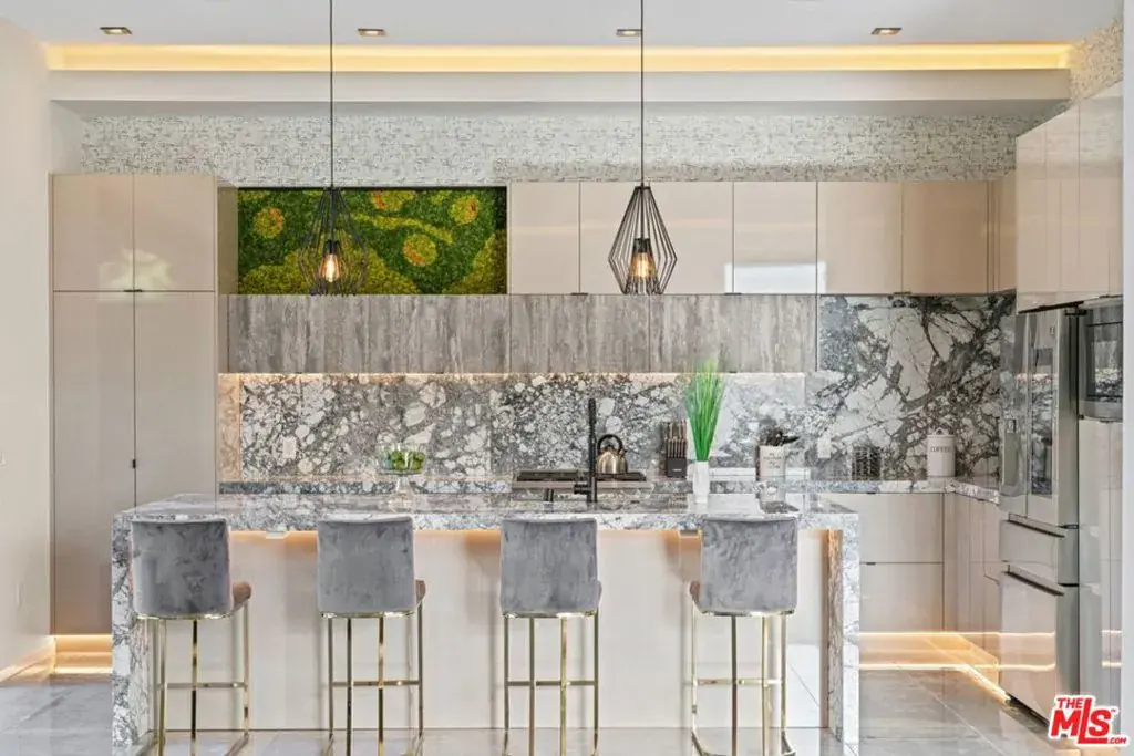Ultra Luxury Short Term Furnished Rental… Home Can Be Rented Daily, Weekly or Monthly. Brand new construction, a stunning double-height marble door entry welcomes you into this sleek, modern, open concept home that immediately flows into quintessential LA indoor/outdoor living through oversized 28 ft sliding glass pocket doors – all leading to a large infinity pool, beach edge, sunken fire pit lounge area, and a complete outdoor kitchen/pool cabana to take in the backyard oasis over a glass of champagne! Absorb the elegant & romantic mood lighting and ambiance the property exudes at sunset, a large indoor kitchen & island, and stunning European lacquer cabinetry. Embrace the sensational master suite, grand walk-in closet and balcony deck overlooking the pool. Tile & hardwood floors, Italian interior doors, chandeliers, backlit mirrors, built-in surround sound, 2-car garage, large kid’s bedrooms – this property boasts endless details perfect for romantic, evening relaxation with family & friends!