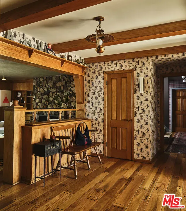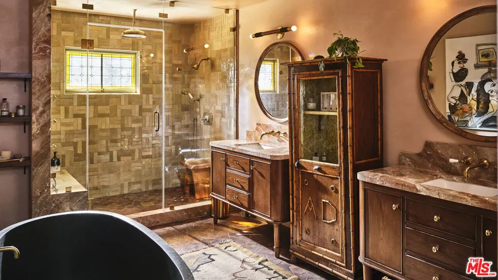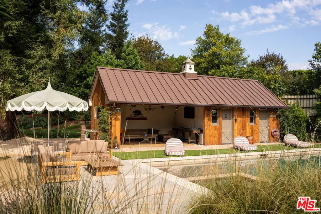 Set behind gates on nearly three-quarters of an acre of flat, park-like grounds in the heart of Toluca Lake, this beautifully restored traditional estate offers a true sense of retreat in one of Los Angeles’ most beloved neighborhoods. Designed with exceptional care and recently transformed by Asom Home, the five-bedroom residence balances timeless architectural character with a refined yet relaxed sensibility, set amid exquisite landscaping by Orca Living that evokes the feeling of a countryside estate. Inside, generous living spaces unfold with warmth and elegance, where original architectural elements meet carefully considered modern updates. Custom woodwork, peg and groove flooring, and a natural stone fireplace are just a few of the details that anchor the main living areas, which flow effortlessly outward and establish an easy rhythm between the home and its landscape. The expansive grounds reveal a series of beautifully composed moments designed for both entertaining and quiet retreat. Sunlit terraces and layered California natives surround a seamless pool and spa, while a charming pool house with its own bedroom and bath offers an ideal guest suite, office, or creative studio. Located within a coveted enclave long favored for its quiet streets and notable homes, the estate reflects the distinctive character that has made the neighborhood one of Los Angeles’ most beloved communities.