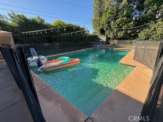 This one story pool home is spacious and fully fenced and gated for privacy. The front door opens to an entry with sweeping limestone and onyx inlaid floors. The huge living room has hardwood floors, and a massive fireplace. The formal dining room also has limestone and onyx inlaid floors and French doors showcasing the lovely pool area. The long galley kitchen has a skylight, impressive black marble counters, plentiful cabinets, a center island with handy prep sink, and an adjacent laundry room. Bedrooms are large and the master has a marble master bath with separate shower, spa tub and a luxurious marble floor and counters. Pavers surround the large pool and makes this yard perfect for outdoor entertaining.