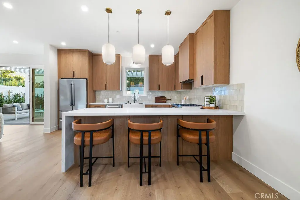 Tucked in the heart of coveted Toluca Lake, 4831 Sancola Ave offers a newly reimagined custom residence where modern luxury meets the timeless charm of Toluca Lake. As you enter, you’re welcomed into a bright, open floor plan where engineered white oak floors guide you through the main living spaces. To the left, a versatile guest bedroom offers flexibility as a home office or private retreat. Even the powder room is a showpiece, featuring terrazzo flooring and a handcrafted Zellige tile backsplash—because in this home, every space makes a statement.