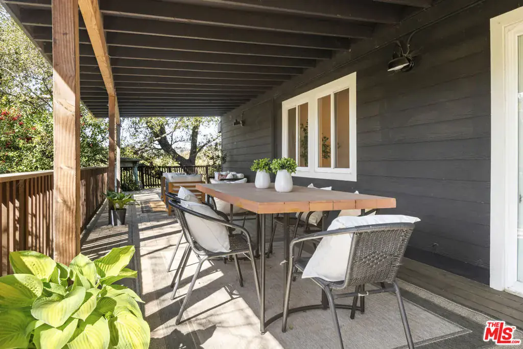 Find your peaceful place to abide in this four-bedroom, three-bath, contemporary cottage-style home with two separate guest suites. Situated on a usable third of an acre fenced yard, this home gives you room to entertain family and guests in a mini-compound designed for indoor-outdoor living. The huge kitchen anchors the living and dining rooms, with an open plan that allows guests to flow from the shaded view deck to the back patio. The primary suite is separate from the other three bedrooms, allowing privacy. Having so many bedrooms provides options for a great home office. The main house bonus basement room could be a home theater, a playroom, or an art studio. Your guests will enjoy their stay in either the separate studio guest house with its own view patio or the guest suite attached to the garage. Flat play areas are edged by grapefruit, lemon, lime, plum, and pomegranate trees. Plenty of parking in the garage and driveway. Close to Topanga State Park trails. Come up to the canyon!