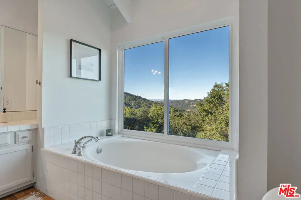 A Rare Topanga Jewel with Sweeping Canyon Views, Income Potential & Spa-Like Amenities. This turn-key Topanga retreat truly has it all. Extensively remodeled and set in one of the canyon’s most coveted microclimates, this exceptional home captures breathtaking cross-canyon mountain views and offers a rare blend of serenity, flexibility, and rental income potential. Surrounded by lush gardens, ancient oak trees, gentle boulders, and tranquil water featuresincluding a cascading waterfallthe property feels like a private sanctuary, yet is just 10 minutes from the Pacific Ocean and the Malibu border. The main residence features 5 bedrooms, 4 bathrooms, 2 kitchens, multiple living spaces, a flexible studio or studyeach enhanced by soaring vaulted ceilings and an adaptable split-level floor plan ideal for multi-generational living, creative workspaces, or hosting guests. Rich wood floors, slate tile, new appliances, and thoughtful upgrades elevate the home throughout. Enter through double doors into a light-filled living room with dramatic vaulted ceilings, a wood/gas fireplace, expansive windows, and French doors framing the spectacular canyon views. A loft above provides the perfect space for an office, studio, or playroom. Expansive decks on both levels run the length of the home, inviting you to relax, entertain, and take in the ever-changing scenery. The lower level offers a large, high-ceilinged rooms ideal for an art studio or movement space, a cozy family room with fireplace, two bedrooms, and a bathroomcreating a private and versatile retreat within the home. Adding to the property’s appeal is a charming detached tiny home, complete with an outdoor bathroom, shower, claw-foot tub, and yoga deck. This peaceful nature escape is ideal for short- or long-term guests, creative retreats, or rental income. Spa-like amenities include an on-site sauna and covered outdoor gym, allowing you to unwind or recharge without ever leaving home. Additional features include solar panels, an oversized two-car garage, and ample storage. Perfectly positioned for a thriving life-work balance, this rare Topanga oasis is minutes from Topanga Village, iconic hiking trails, beaches and more!