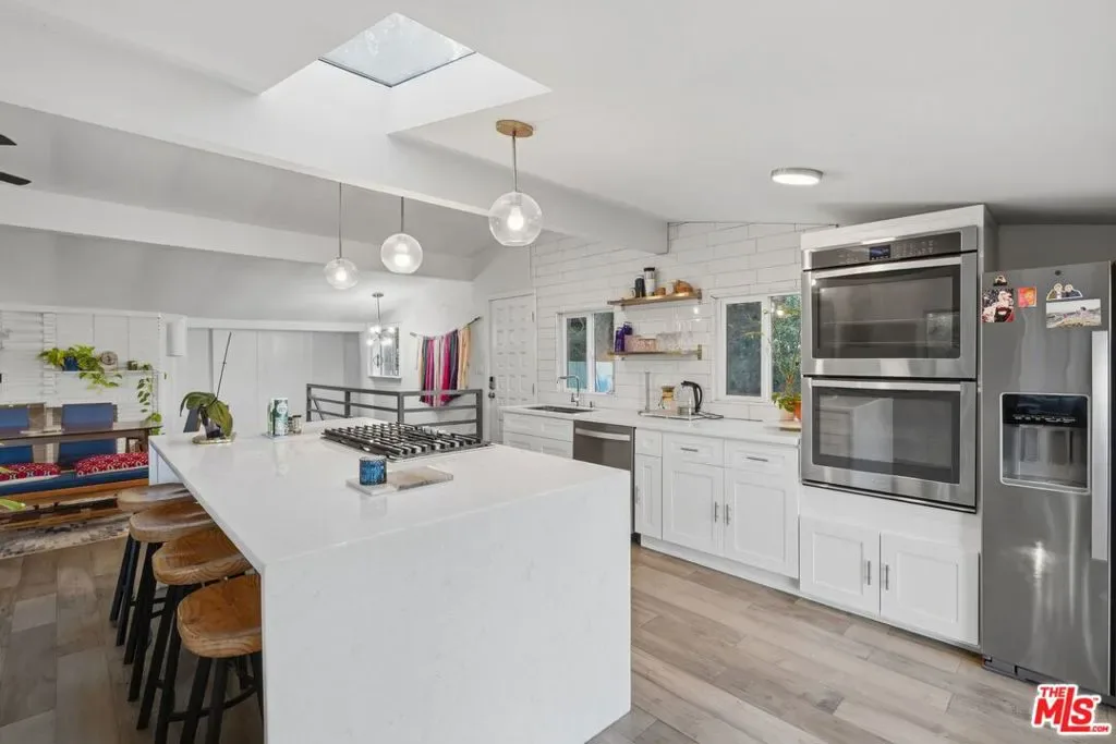 Rebuilt from the ground up with permits in 2017, this Topanga Canyon home blends the character of its 1925 roots with the comfort of a thoughtfully modernized retreat. The result is a serene, light-filled home with sweeping cross-canyon views, an open floor plan, and a connection to the outdoors that defines life in the canyon. Inside, skylights and large windows flood the main living areas with natural light throughout the day while framing panoramic cross-canyon views from multiple vantage points. The open floor plan connects living spaces effortlessly, and the main level includes a beautifully updated full bathroom with a soaking tub. Outdoor living is a natural extension of the home, with a large deck featuring multiple dedicated seating areas that open directly off the main living space. Before you even step inside, a waterfall fountain and the home’s historic entry steps set the tone for everything that follows. The lower level houses all three bedrooms and a second full bathroom, each with its own separate exterior access ideal for guests, family, or simply moving through daily life on your own terms. Bonus spaces include a dedicated yoga and meditation studio toward the rear of the property, a quiet, purposeful room grounded in the natural environment surrounding it, and a generously sized, secure, dry storage room tucked beneath the house. Trail access begins at the property line, opening into some of the finest hiking and trail running in the region. Topanga State Park and the Santa Monica Mountains National Recreation Area offer miles of oak woodland, chaparral, and open meadow, with views stretching from the peaks to the sea. Nearby creek access adds swimming holes, birding spots, and quiet places to simply sit and listen. Tucked between the mountains and minutes from Woodland Hills and Pacific Coast Highway, Topanga is one of the last true communities in Los Angeles County where people know each other, show up for each other, and choose to stay from the Sunday farmers market to the trails just outside your door. Thoughtfully rebuilt, carefully maintained, and entirely specific to the life that draws people here. Those who find this place rarely want to leave.