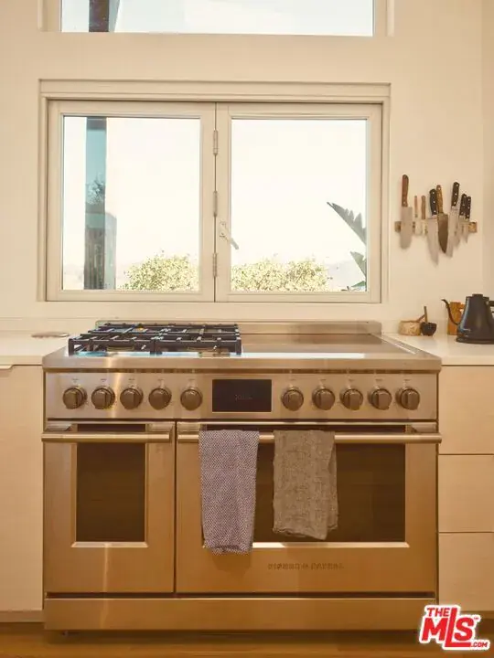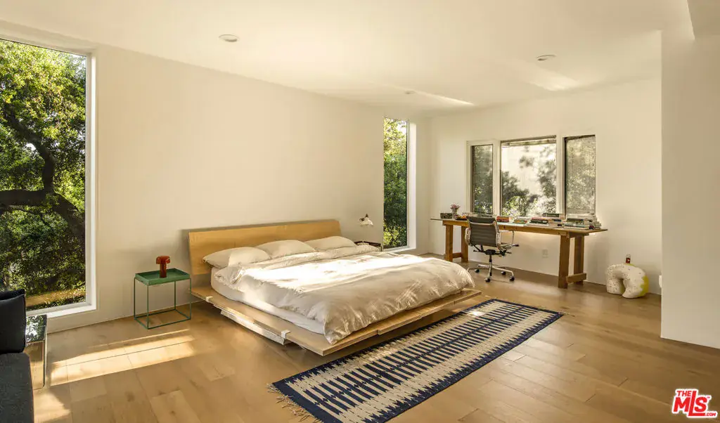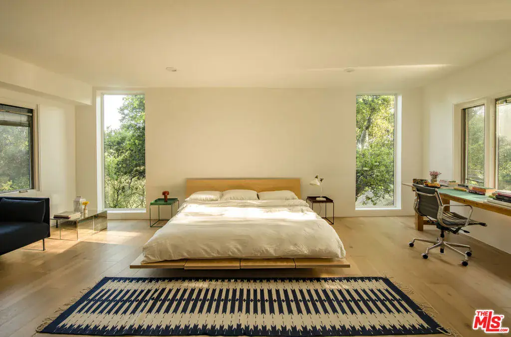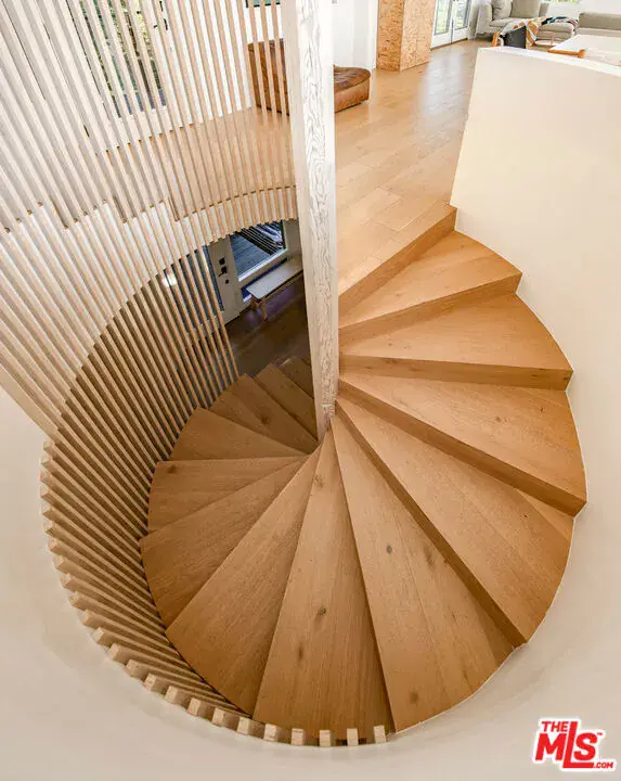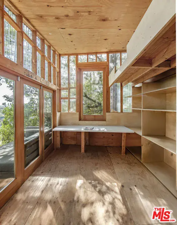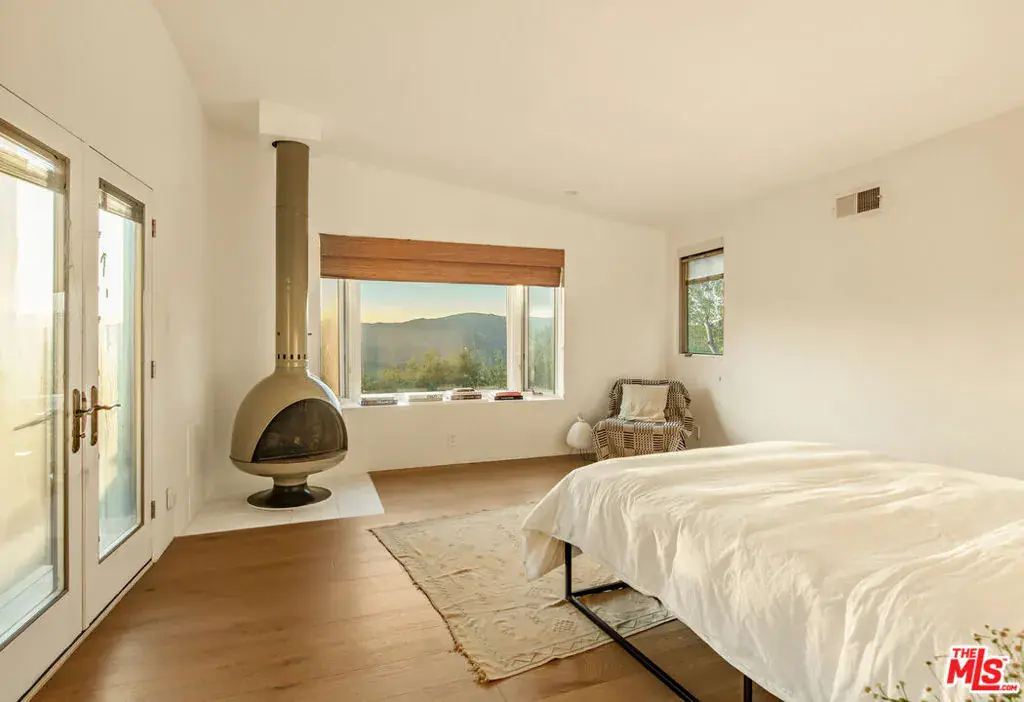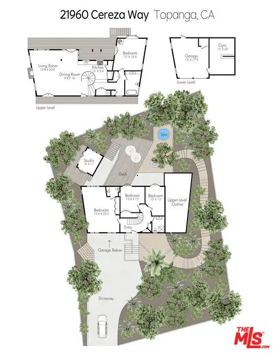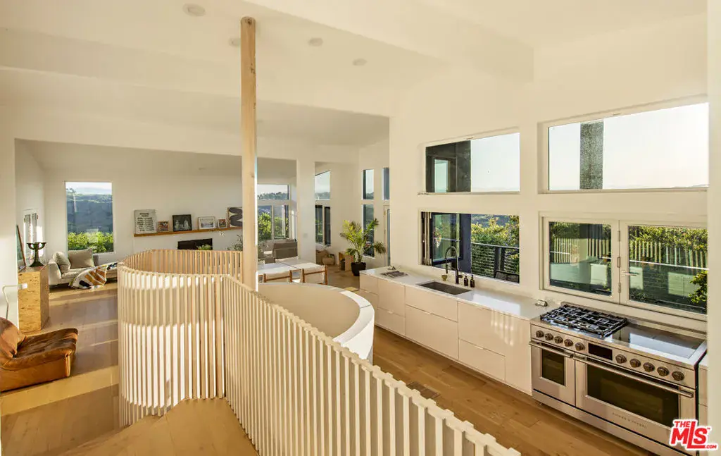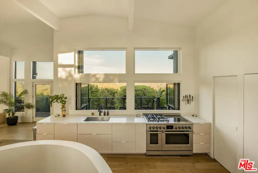 Cereza is an architecturally distinctive Topanga retreat and a true creative sanctuary. Blending rustic nature and design minimalism, the home is filled with shifting natural light from morning through dusk, creating a warm, organic atmosphere throughout. Offering breathtaking, unobstructed views, this pristine 4-bedroom, 3-bath residence is a rare opportunity to live on the coveted ridgeline that merges Topanga’s creative spirit with the modern luxury of Calabasas. A sculptural staircase anchors the home, serving as a striking architectural moment that defines the space. The upper level features a chef’s kitchen with outdoor counter seating that opens seamlessly to an airy living room and dual panoramic balconies. A private one-bedroom suite on this level includes a retro fireplace and sweeping views that make sunrise and sunset their own unique ritual. Downstairs, a second suite and two additional bedrooms connect directly to an expansive deck surrounded by lush landscaping and a tranquil Japanese soaking tub. Multiple outdoor lounge areas are positioned to take full advantage of the canyon setting ideal for entertaining, reflecting, or simply being present in nature. A detached cabin studio provides additional privacy and flexibility, complete with a built-in work area and loft bed for a guest. A dedicated yoga platform and suspension net allow you to float amongst the oaks, creating calm and connection with nature. Completing the property, a two-car garage currently serving as a ceramic studio and Hi-Fi movie lounge with adjoining gym adds versatility to this thoughtfully designed residence. Where design, nature, and intention converge. Welcome to Cereza.