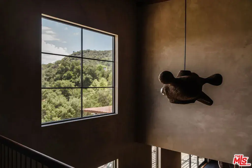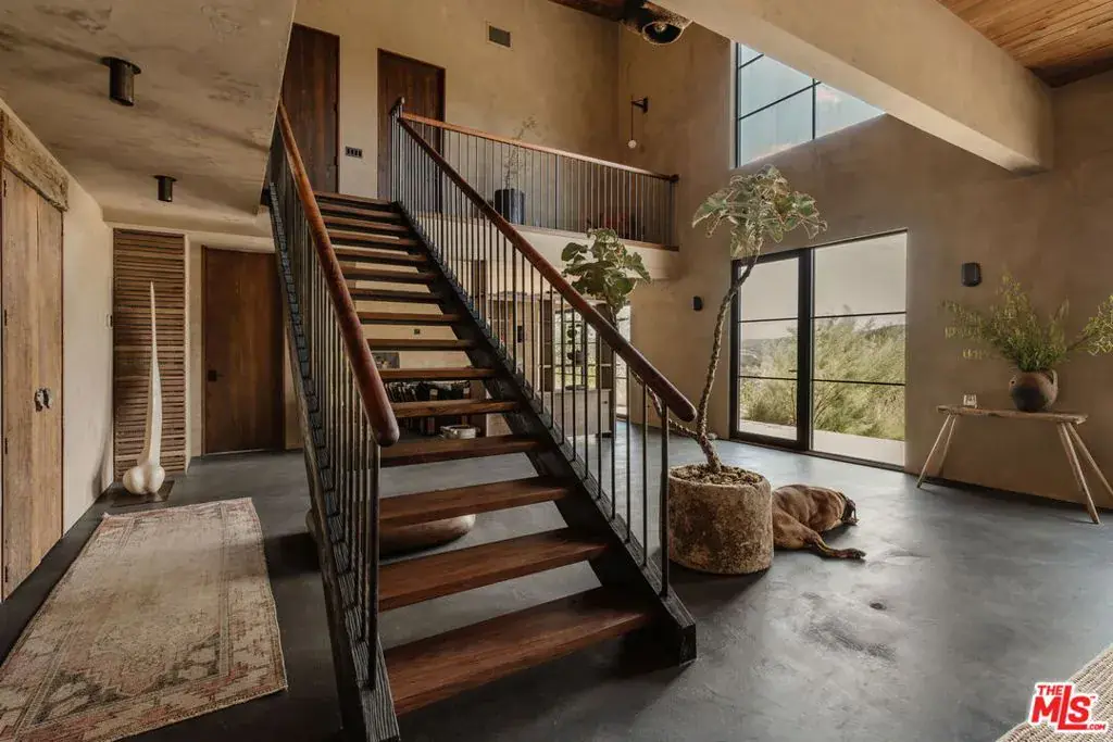 Rascal Ranch: A Masterpiece of Craftsmanship and Design. Nestled along Topanga’s most coveted road, Rascal Ranch epitomizes refined craftsmanship and innovative design. This expansive estate offers unparalleled privacy and sweeping, unobstructed canyon views, harmoniously blending modern elegance with the serene beauty of its natural surroundings.The open-concept interior features hand-troweled plaster walls that showcase the shifting light, paired with micro-cement flooring which exudes warmth and sophistication. Expansive doors open to decks and lush gardens, creating an effortless flow for entertaining and tranquil living. At the heart of the home, the kitchen’s bandsawn walnut cabinetry, raw leathered quartzite, and Ceppo marble countertops are complemented by state-of-the-art appliancesa striking fusion of form and function.A custom steel and walnut staircase ascends to the second floor, where a floating cork light sculpture and verdant canyon vistas captivate the eye. Wide-plank antique oak floors lend warmth, enhanced by bespoke walnut window sills, door frames, bookshelves, and millwork. Each of the 4.5 bathrooms is a masterpiece, with organic stonework and basins that double as art.The partially subterranean lower level offers a two-car garage, laundry, full bath, and a versatile interpretive space. Fully self-sufficient, Rascal Ranch draws water from two deep wells (150 and 350 feet) and is crowned with a newly installed, 30-year fire-resistant roof. The meticulously designed landscape integrates native California and Australian flora, supported by advanced irrigation and lighting systems. A private orchard, brimming with mature fruit and olive trees, completes this seamless union of home and nature.