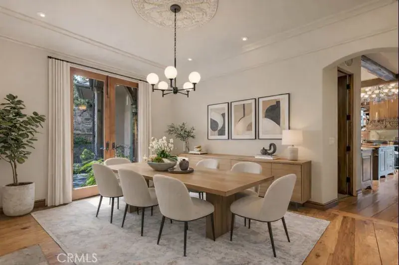 A meandering manmade creek flows through the property, creating a serene backdrop for multiple outdoor living spaces designed for both intimate evenings and grand gatherings. Every detail of this 3,000 sq. ft. residence, reflects artistry and craftsmanship—its stone exterior evokes the romance of old-world European estates, while its interiors blend warmth, sophistication, and comfort.