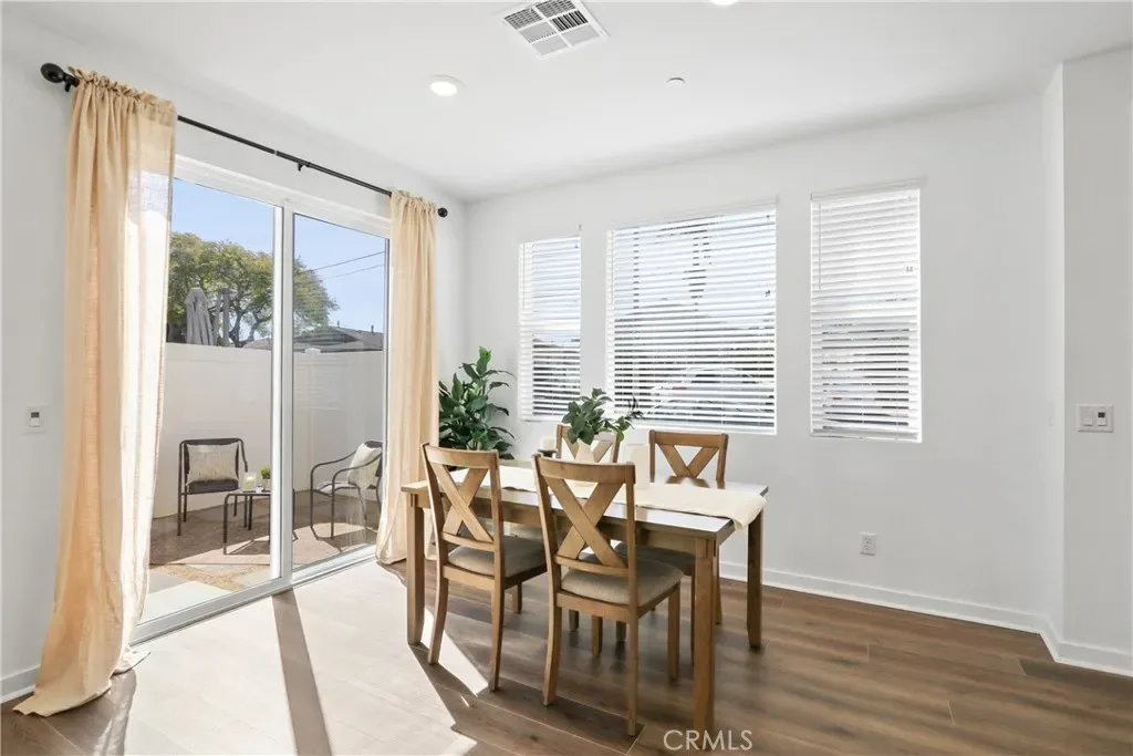 Welcome to this beautifully designed modern home, completed in December 2023. Step inside to soaring ceilings and an abundance of natural light streaming through dual-pane windows. The open-concept layout features 3 bedrooms and 2.5 bathrooms, creating an ideal setting for both everyday living and entertaining. The main level showcases stylish laminate flooring and a spacious flow between the kitchen, dining, and living areas. The chef’s kitchen is thoughtfully appointed with soft-close shaker cabinetry, white quartz countertops, a large center island, subway tile backsplash, and stainless steel appliances including a stove, microwave, and dishwasher. A generous pantry provides ample storage, while the open design keeps everything connected. The dining and living areas open to a private, oversized patio—perfect for relaxing or entertaining outdoors. A convenient powder room, along with direct access to the two-car garage featuring a smart opener and EV charging readiness, completes the lower level. Upstairs, the primary suite serves as a peaceful retreat with high ceilings, abundant light, a spa-like bathroom with dual vanities, an oversized shower, and an expansive walk-in closet. Two additional spacious bedrooms, a full bathroom, and a large laundry room with energy-efficient washer and dryer round out the upper level. Designed with sustainability in mind, this home includes energy-efficient appliances, windows, and water heater, along with a rainwater collection system and automatic sprinklers. The all-electric design is complemented by $30,000 in owned solar panels, helping to keep energy costs low. Ideally located near Old Town Torrance, shopping, dining, and major freeways—with guest parking nearby—this home offers the perfect blend of modern comfort, style, and efficiency. Don’t miss this exceptional opportunity to make it yours!