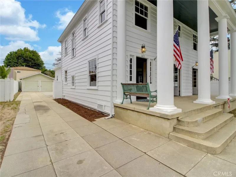 THIS MAJESTIC HOME IS MODELED AFTER A CLASSIC, COLONIAL REVIVAL MANSION. It’s located in THE HEART OF “OLD TORRANCE” ON ONE OF ITS MOST COVETED STREETS. The inviting entry to this home is A COVERED, COLANNADED FRONT PORCH with two sets of French doors for an indoor/outdoor style to the large south facing living room. The separate Formal Entry Hall is stunning, with a chandelier, gracious windowed staircase and handcrafted pocket doors that can separate it from the living room. The living room flows into the spacious dining room with a second chandelier and additional handcrafted pocket doors which can completely enclose the living room or remain open for a flowing and open feel. The house’s design offers four upstairs bedrooms, two Jack & Jill baths with sunlight from many original windows and an additional level finished attic. The oversized lot has 50 ft frontage on a 7000 sq ft street to alley lot. The long driveway passes the home to the two car garage and grandfathered guest quarters. There is also access to a rare concrete lined basement from inside the main home.