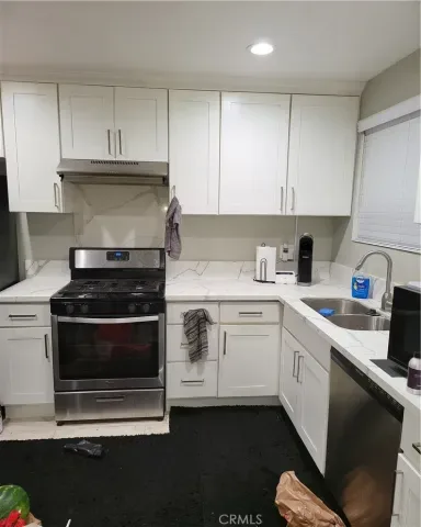 Step inside to discover a bright and clean interior featuring a thoughtfully updated kitchen with sleek white shaker cabinetry, modern hardware, and elegant stone countertops. The stainless steel appliances and contemporary finishes create a polished, move-in-ready cooking space, while ample cabinetry ensures practical storage. The layout flows efficiently, making everyday living and entertaining both convenient and comfortable.