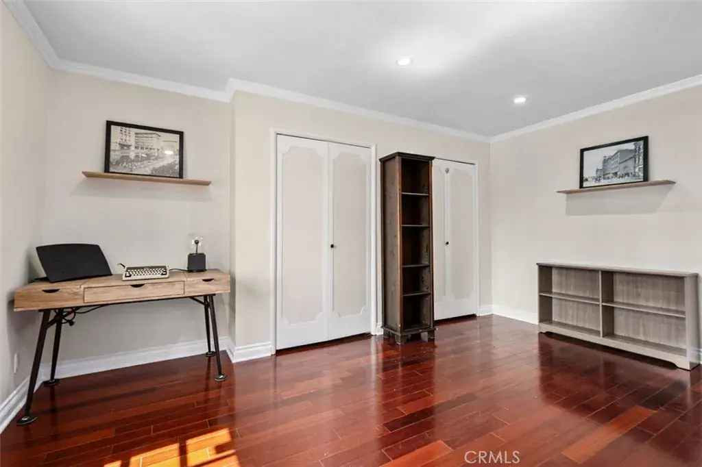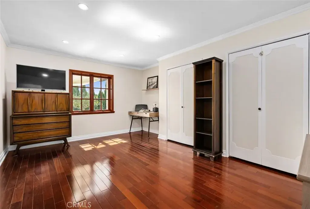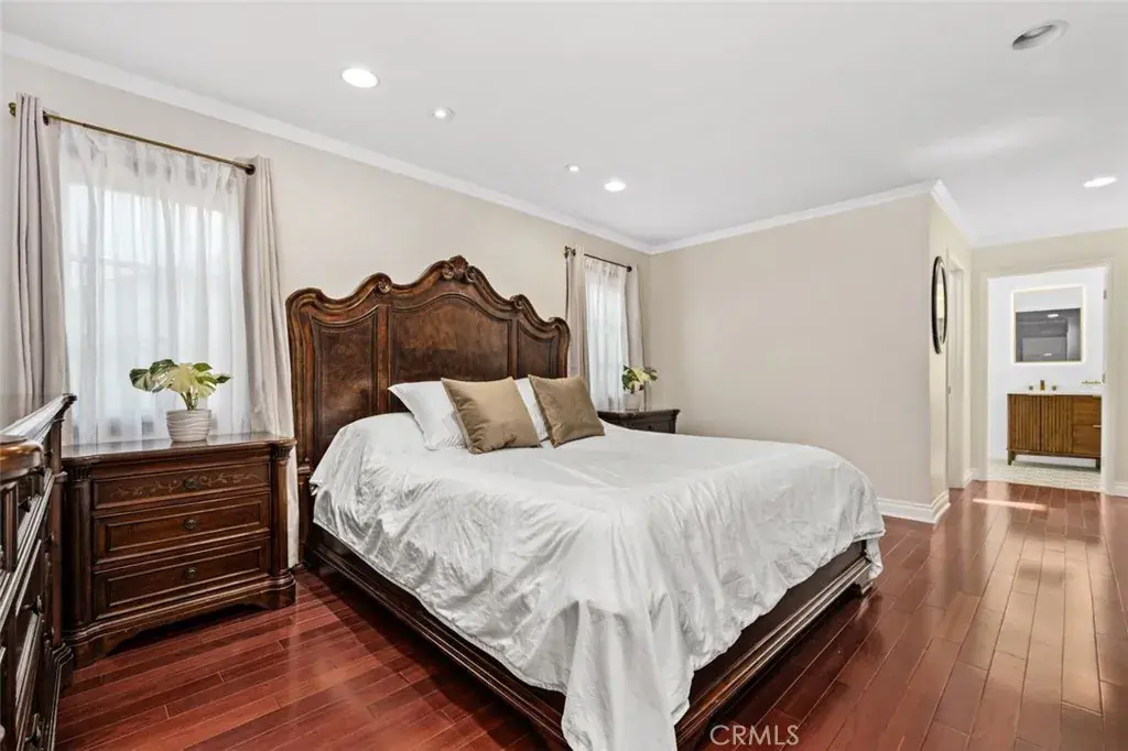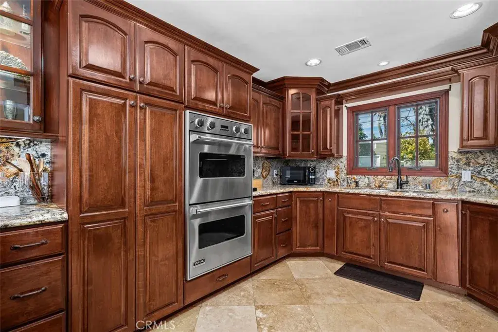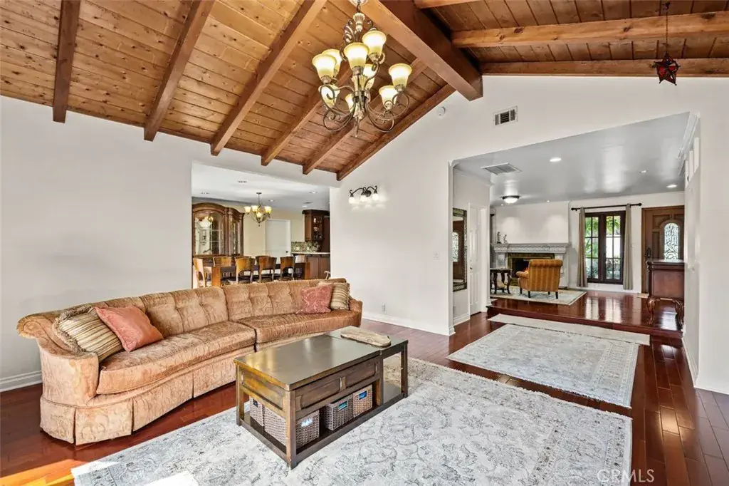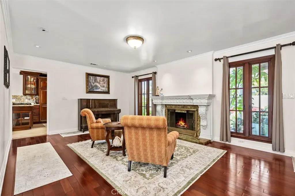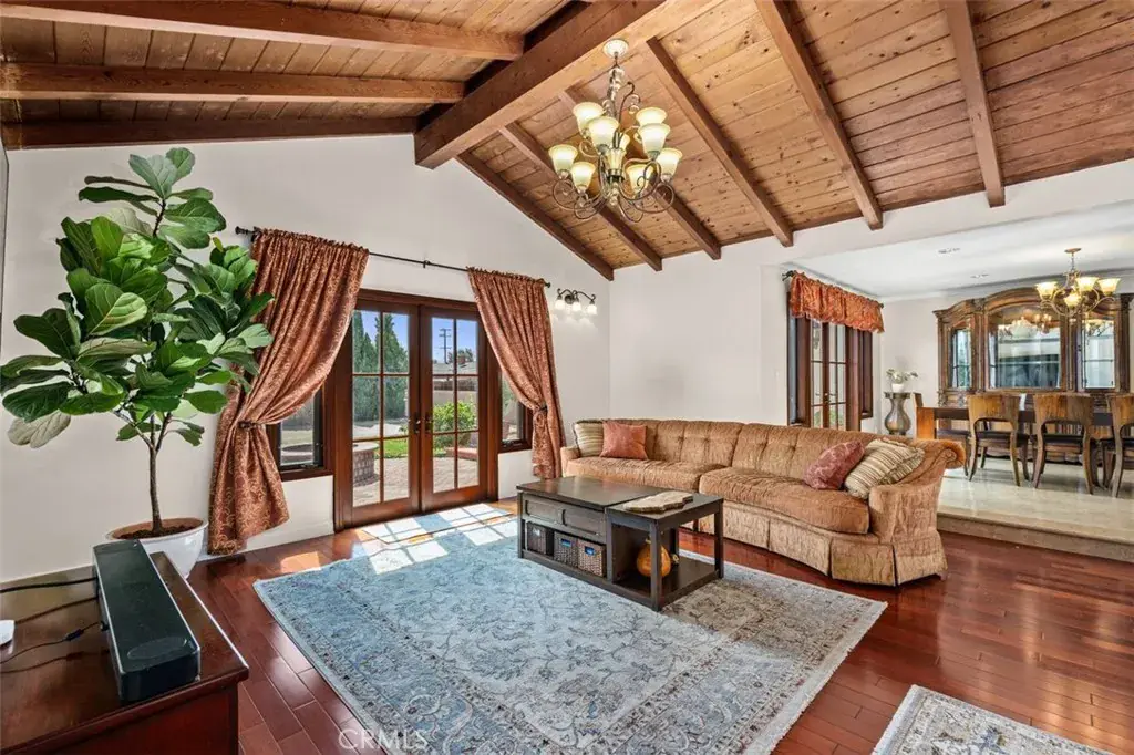 Gorgeous Lease – Offered Furnished or Unfurnished. Beautifully updated home with mahogany wood floors, Kolbe windows/French doors, central heat & A/C, Navien tankless water heater, LED lighting & Eero routers. Gourmet kitchen with maple cabinets, granite counters & Viking appliances (6-burner stove, double oven, stainless sink). Dining room with travertine floors & French doors opening to a spacious garden with fruit trees. Family room features a 12-ft wood cathedral ceiling, flat screen TV, LG sound system & French doors to the deck. Living room with gas fireplace, green onyx hearth & wood mantle. Updated baths include travertine floors, cast iron tub, integrated shelving & original tile accents. Primary bath offers a spa tub, quartz shower, double vanity, skylight, bidet & LED lighting. Storage/laundry room with HE washer/dryer, custom cabinets & mirrored closets. Outdoor living includes new landscaping, mature fruit trees, a fire pit, a paver deck & outdoor dining set. Gardening service included. Two-car driveway + ample street parking. You have your own section of the garage with storage space, shelving, and a washer/dryer. Garage includes a small portioned-off junior ADU with no doors to the house. The junior ADU has a separate entrance & property address with separate utilities. The ADU is currently leased. Two parking spaces in the driveway are for the sole use of the main house. Please inquire for more details.