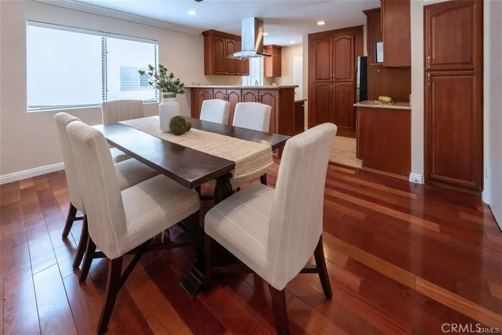 Designer perfect end unit townhome. Direct access 2 car garage features an attached bonus room (app. 300 sq ft.), not included in square footage, which is a completely finished entertainment room with cabinetry, TV hookups and furnishings. Brazilian cherry hardwood floors, wine frig, and private patio make for great entertaining in the large living room, wired for surround sound. New carpet just installed with upgraded padding. Entire interior has just been professionally painted and cleaned. Beautiful kitchen with granite countertops and stainless steel appliances. Refrigerator and Samsung washer and dryer included, without warranty. Spacious Primary Bedroom features a huge walk-in closet with built-ins, plus an additional large separate closet with built-ins.