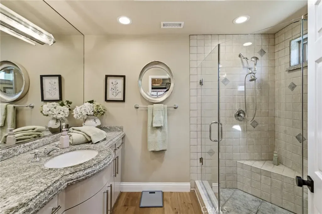 individual good size laundry room off kitchen, formal dining room – lots of quality upgrades through out – step into the amazing backyard with covered patio, built in BBQ, huge area with enough room for a pool, planters, firepit – you could have several parties going on at the same time – now we view the detached ADU in excellent condition – quartz counters, stainless stove, laminate wood flooring, nice bedroom with lots of built in shelfing, forced air, AC and a 3/4 bath – next we have an attached bonus room for a office, study, play room or your choice – convenient to award winning schools + shopping + restaurants + medical + freeway access + El Camino College – don’t miss this incredible opportunity – what are you waiting for?