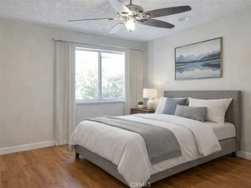 Inside, the home is ready for someone to bring their imagination and transform it with personal touches. Most updates needed are cosmetic, and the listing includes virtually staged photos to help buyers envision the space with fresh flooring and paint. A previous owner converted the entry broom closet to allow for interior laundry, and the kitchen countertops have already been updated. Ceiling fans throughout help maintain a comfortable climate year-round.